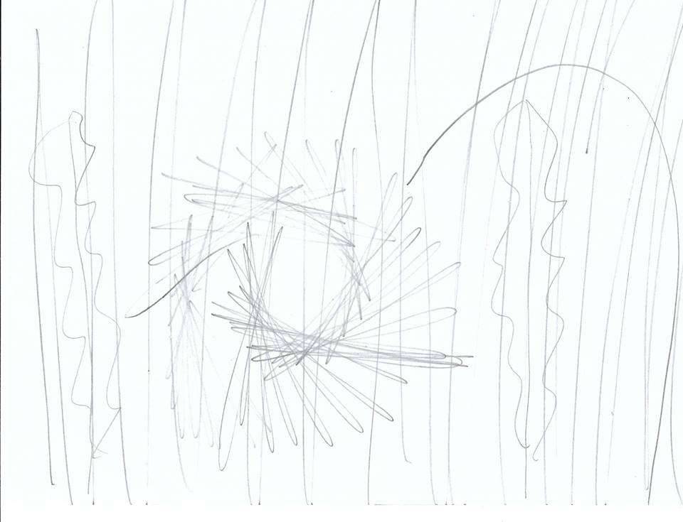Na obrazie widzimy abstrakcyjną kompozycję pełną różnych kształtów i linii. Kolory? Cóż, dominuje tu prostota – tylko czernie i biele. Linie zdają się tańczyć po powierzchni, tworząc chaotyczny, ale zarazem fascynujący układ. Atmosfera jest raczej zabawna, trochę jakby artysta chciał nas zaprosić do świata swojej wyobraźni. Rysunek sprawia wrażenie, jakby wykonany był ręką dziecka. Taki luźny sketch, który przyciąga nas swoją bezpretensjonalnością. Można by nawet powiedzieć, że artysta posłużył się stylem przypominającym doodle, w którym każda kreska ma swoje miejsce i znaczenie. Co czuje odbiorca, patrząc na to dzieło? Może być zaskoczony prostotą albo wręcz przeciwnie – zaintrygowany i chętny do własnych interpretacji. Może zauważyć tu wirujące spirale, które przypominają wodę wirującą w wirze, albo delikatne linie, które wyglądają jak rosnące trawy na wietrze. Dla mnie osobiście, ten rysunek to taka namiastka beztroskiej zabawy i przestrzeni do refleksji. It's a kind of art that whispers freedom, mówi o wolności i braku granic w twórczości. Mogłam zrobić takiego ślimaka! - powiedziałoby dziecko, zachwycone spontanicznością tego dzieła. Całość wciąga odbiorcę w świat pełen lekkości i sugestii – każdy znajdzie tu coś dla siebie.