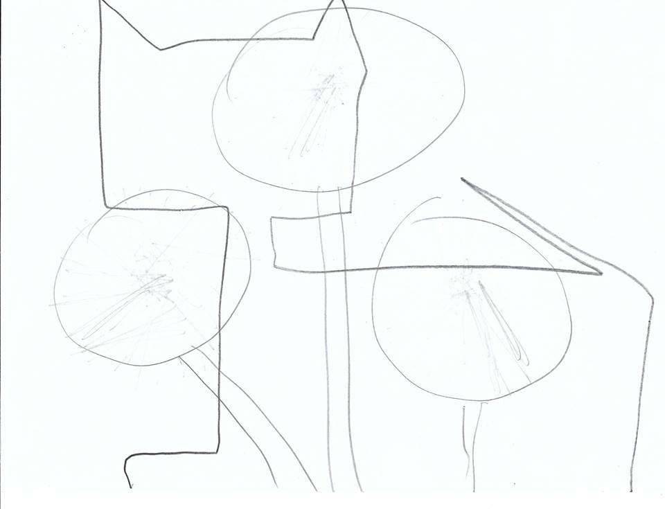 Na obrazie dominują proste linie i geometryczne kształty, tworząc kompozycję przypominającą nieco modernistyczne dzieło sztuki. Użycie ołówka nadaje całości lekkości i subtelności. Linie są delikatne, a forma abstrakcyjna, co może wydawać się przypadkowe, ale jednocześnie przemyślane. Artysta postawił na minimalizm, co sugeruje celowe ograniczenie kolorów do odcieni szarości. Trochę jakby ktoś chciał nas wprowadzić w atmosferę niepewności i oczekiwania. Człowiek czuje, że kryje się za tym jakaś nieodgadniona historia. Tak proste, ale takie zawiłe. Styl wydaje się być bliski ideom modernizmu, gdzie istota dzieła tkwi w prostocie formy i konceptu. Technika wykorzystana to kreska i przestrzeń, które razem budują narrację. Może artysta chciał pokazać, że w prostocie jest magic. Emocjonalnie, obraz wywołuje zarówno zaciekawienie, jak i pewną melancholię. Patrząc na niego, można poczuć, jakby to był fragment większej całości. Dzieciak by powiedział: "To chyba są kółka i kwadraty!". Ten rodzaj twórczości na pewno pobudza wyobraźnię i zmusza do refleksji.