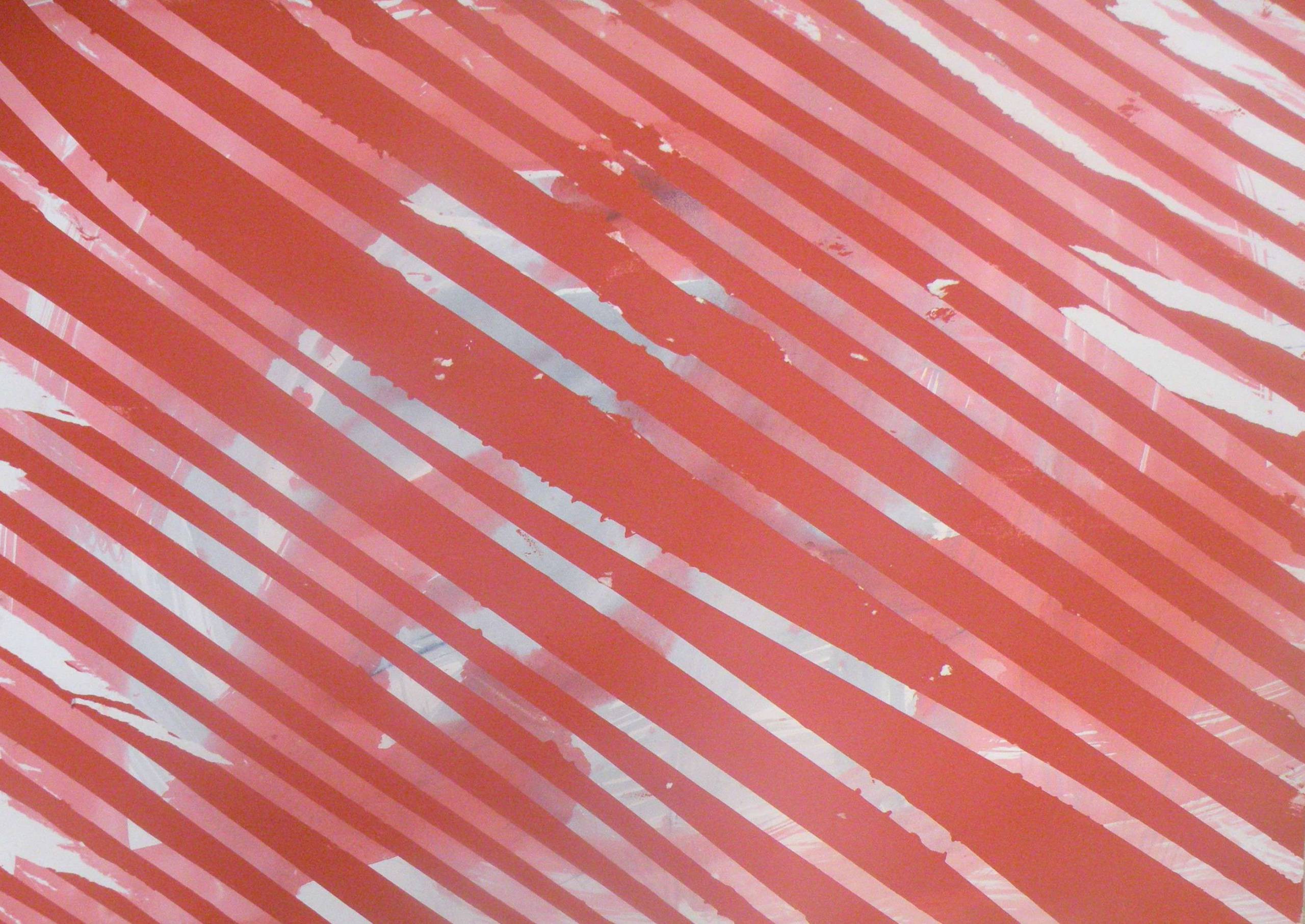 Obraz emanuje energią dzięki czerwonym, ukośnym pasom, które zdają się tańczyć po powierzchni. Kontrast między intensywną czerwienią a subtelnymi, białymi odcieniami w tle tworzy dynamiczną kompozycję, która przyciąga wzrok. Te paski wyglądają jakby ktoś się bawił kolorowymi liniami na niebie albo na podłodze. Atmosfera jest pełna napięcia i ruchu, jak na zatłoczonym mieście, gdzie wszystko dzieje się naraz. Artysta użył techniki, która sprawia wrażenie chaosu, ale kontrolowanego. To trochę jakby znali zasady i celowo je łamali, prowadząc do efektu "wow". Zastosowanie różnorodnej intensywności pasm daje wrażenie głębi oraz rozmieszczenia energii w nieprzewidywalny sposób. Dla odbiorcy ten obraz może stać się pretekstem do refleksji nad chaosem codziennego życia. Może też wzbudzić poczucie ekscytacji, jak przed nieznanym odkryciem. Albo przypomnienie, że czasem linie przecinające naszą drogę mogą nadawać kierunek. To jest po prostu awesome! W końcu kto nie lubi czasem odpocząć w świecie, gdzie wszystko jest możliwe i nic nie jest oczywiste. Więc po prostu patrz i się ciesz.