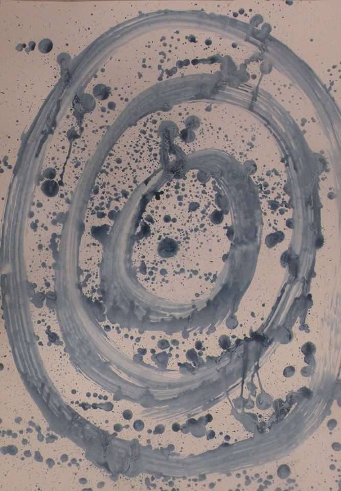 Obraz emanuje dynamicznym chaosem niebieskich, wirujących kształtów i rozbryzgów, które przypominają ogromny wodny wir na kremowym tle. Kręgi, jakby narysowane od niechcenia, mają coś z dziecięcej zabawy farbą. Proste smugi i kropelki płynnie komponują się w harmonijną całość. Atmosfera jest pełna ruchu i spontaniczności. Można poczuć, że to moment zatrzymany w czasie, który przyciąga wzrok. Przemawia do nas jak obrazy z nurtu Jacksona Pollocka — swobodne, lecz pełne gry kolorów i kształtów. Artysta używa technik akwareli, co dodaje lekkości i fluidności dziełu. Z tego szaleństwa kolorów wyłania się emocjonalna narracja o wolności i ekspresji. W dziele można wyczuć radość tworzenia, to trochę jak dziecięca fraza "Mamo, namalowałem coś specjalnego!" Takie obrazy sprawiają, że serce bije mocniej i myśli pędzą — aż chce się powiedzieć "wow". Ktoś mógłby nazwać to "mesmerizing". To artystyczny taniec form, który jednocześnie uspakaja i inspiruje.