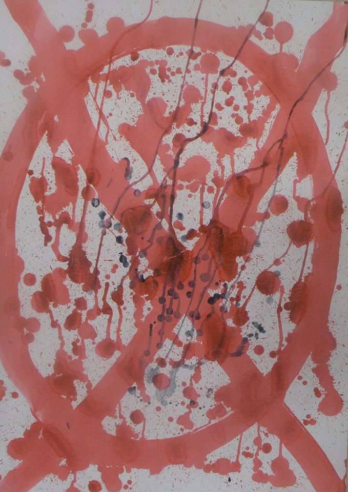 Obraz emanuje energią i chaosem, dominującym kolorem jest intensywna czerwień. Wzory kropek i plam przypominają eksplozję farby, splecioną z dynamicznymi liniami. To prawdziwa "adventure" dla oczu, prowokująca do zanurzenia się w tym żywym tańcu form. Kształty są niejednolite, splatają się i krzyżują, tworząc coś na podobieństwo burzy emocji. Atmosfera obrazu jest nieco nieprzewidywalna, przypomina szalone popołudnie pełne niespodzianek. Technika artystyczna, wykorzystująca splatter, nadaje pracy ekspresyjności typowej dla action painting. Można poczuć, że artysta nie bał się trochę pobrudzić, tworząc to dzieło, co dodaje mu autentyczności. Widz, patrząc na obraz, może poczuć ekscytację, jak i niepokój. To jak widzieć emocje wymykające się spod kontroli. Można się zastanawiać, co artysta chciał powiedzieć, a zarazem odnaleźć w tym swój własny chaos. „Jak wielką kałużę!” – mogłoby powiedzieć dziecko, widząc ten rozgardiasz farby. Obraz żyje pełnią kolorów, tworząc sieć emocji bezładnych, ale porywających. To dzieło, które z pewnością zapada w pamięć, sprawiając, że chcesz wracać do niego raz jeszcze, by odkrywać nowe szczegóły w czerwonym uniesieniu.