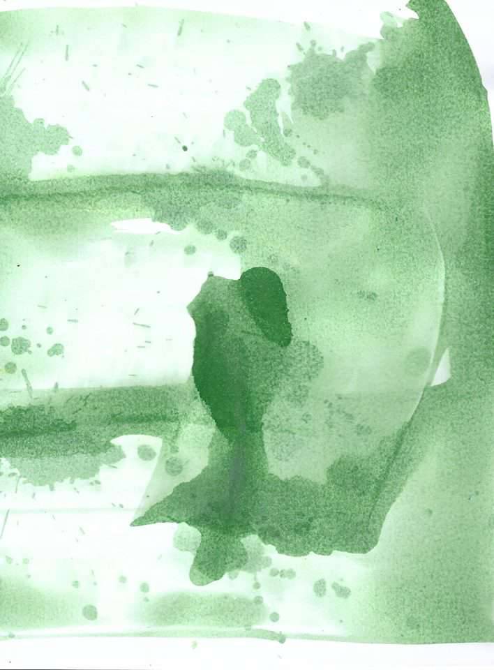 Na obrazie dominuje soczysta zieleń, która rozlewa się po całej powierzchni niczym mgła nad leśnym stawem. Plamy koloru układają się w nieregularne, nieco chaotyczne kształty. Całość wydaje się być przypadkowa, a zarazem celowa. To taka kontrolowana abstrakcja. Atmosfera obrazu jest lekka i spokojna, niemalże zen. Przypomina mi letnie, beztroskie dni. Technika użyta przez artystę przypomina watercolor, gdzie farba bawi się, rozmywając krawędzie i tworząc subtelne przejścia między odcieniami. Ta kompozycja może budzić nostalgię, przypominając wspomnienia z dziecięcych lat. Co tutaj widzę? Świat zieleni, który jest taki soft i delikatny jak szczotka z mchu. Można by pomyśleć, że artysta przenosi nas do świata, gdzie wszystko jest greener on the other side. A jak coś się poplami to mama mówi – to się wypierze! W tej abstrakcji jest coś, co przyciąga wzrok, ale także skłania do refleksji. Co tam widzisz, a czego nie widzisz? Każdy zobaczy coś innego, a to jest właśnie magiczne.