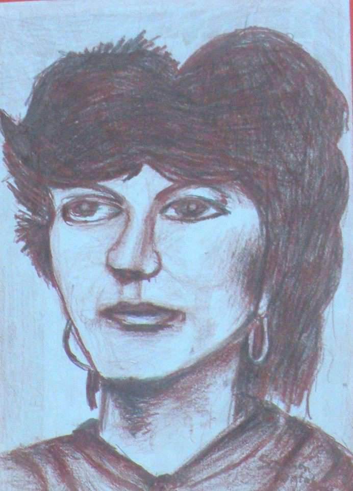 Na tym rysunku dominuje brązowa tonacja, która nadaje mu głęboki i retro klimat. Linie są miękkie, plastyczne, delikatnie rozmyte. Twarz przedstawiona jest subtelnie, z łagodnymi cieniami, które tworzą swego rodzaju melancholię lub nostalgia. Kompozycja jest prosta, skupia się głównie na postaci, kierując naszą uwagę na jej wyraz twarzy. Obraz emanuje spokojem, można wręcz poczuć ciszę, jak o poranku w lesie. Twarz postaci ma tajemniczy wyraz, jakby chciała nam coś opowiedzieć, ale nie do końca wiedziała, jak to zrobić. Artysta zastosował technikę szkicu ołówkiem, co dodaje artyzmowi pewnego rodzaju niedoskonałości, ale to właśnie te "flaws" czynią go bardziej ludzkim. Gdy na niego patrzę, czuję mieszankę zaciekawienia i zadumy. Może to osoba, która dużo przeszła, a może po prostu cicha obserwatorka świata? Kto wie! Jakby powiedział siedmiolatek, ta pani ma fajne włosy! Jeden rzut oka może wywołać wiele interpretacji. Obraz może wywoływać w odbiorcy poczucie nostalgii za czymś utraconym.