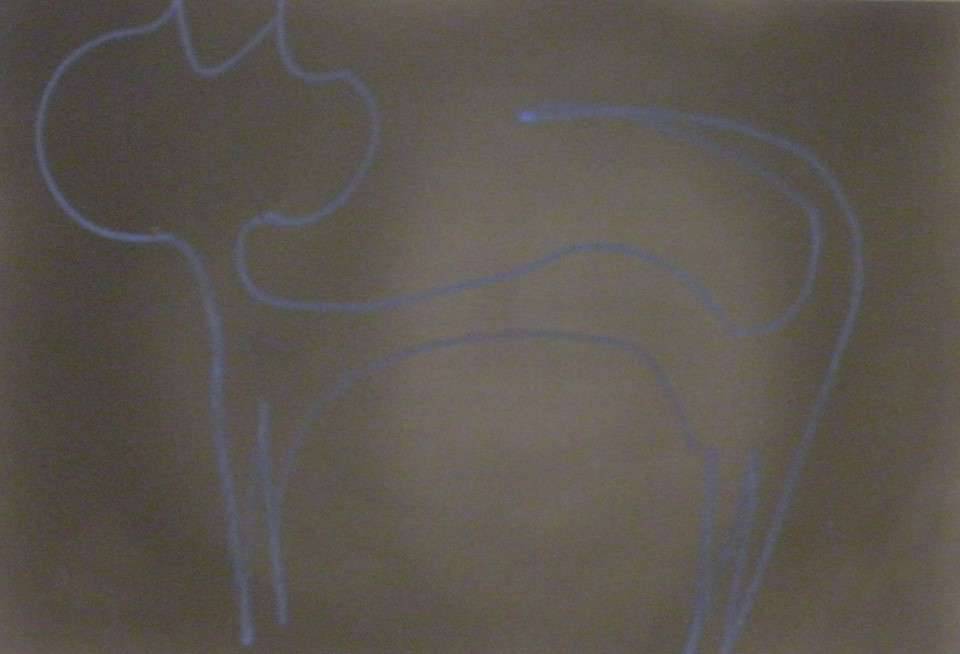 Na obrazie widzimy prostą, niebieską linię tworzącą kontur kota na ciemnym tle, które nadaje mu tajemniczy i nieco nostalgiczny nastrój. Linia jest płynna, ale jednocześnie zaskakująco zdecydowana. Całość jest minimalistyczna, przypominająca trochę szkic dziecka, co dodaje jej uroku i sprawia, że jest jak doodle w notesie. Tło jest ciemnobrązowe, prawie czarne, co jeszcze bardziej uwypukla jasnoniebieski kształt. Ten obraz przyciąga swoją prostotą i swoistą nonszalancją, można powiedzieć, że less is more. Artyysta zastosował tu podejście abstrakcyjne, które jednak wywołuje bardzo konkretne emocje. Może to być przypomnienie dzieciństwa, kiedy rysunki były proste, bez zbędnych detali. A może mała refleksja na temat ulotności kociego ruchu? Bo przecież kot się rusza jakby był jednym płynnym ruchem, prawda? Obraz mógłby zasumować 7-latek mówiąc: "To kot, który się bawi w ciemności." Idealnie oddaje nastrojową i jednocześnie beztroską atmosferę dzieła. Mimo swojej prostoty, emanuje pewnym ciepłem, może nawet nostalgia za beztroskimi chwilami. Kompozycja jest zrównoważona, chociaż jednocześnie nonszalancka, co dodaje jej dynamiki. Całość prezentuje się jak artystyczna impresja chwili złapanej na gorąco. Ten obraz to prawdziwy visual storytelling dla każdego, kto ma ochotę dać się porwać wyobraźni na małą wycieczkę.