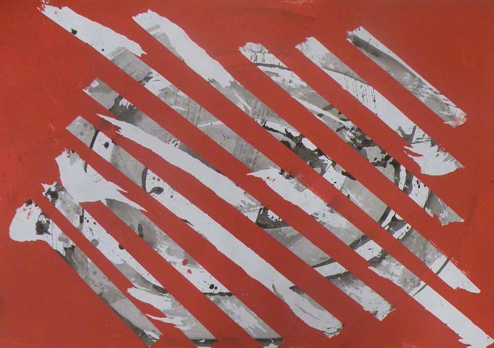 Ten obraz emanuje niezwykłą energią i dynamiką. Dominująca czerwień tworzy intensywne tło, na którym przecinają się białe i czarne, ukośne pasy. Te abstrakcyjne formy przywodzą na myśl chaos i porządek jednocześnie. Artysta umiejętnie bawi się kontrastami, nadając kompozycji głębię i rytm. To jakby ktoś narysował na niebie kawałki ogonów komet. Technika malarska jest dynamiczna, z widocznymi śladami pędzla i nierównymi krawędziami. Obraz przyciąga wzrok swą energicznością i nieprzewidywalnością. Można by się zastanowić, czy to dzieło jest wyrazem buntu czy może spokojnej refleksji nad codziennym zgiełkiem. To trochę jak rollercoaster dla oczu - intensywne przeżycie, pełne niespodzianek. Takie artystyczne "wow". Obraz wywołuje uczucie zagubienia, ale też fascynacji. Można poczuć coś jak dreszczyk emocji i chęć odkrywania kolejnych warstw jego znaczenia.