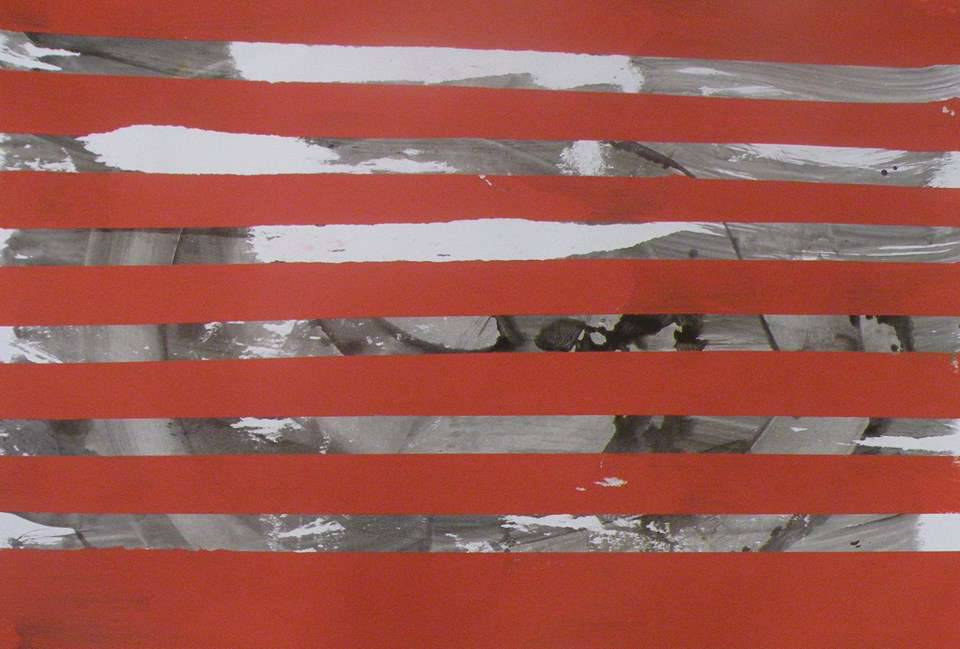 Na obrazie dominują wyraziste czerwone pasy, które przerywają monochromatyczną kompozycję tła. Tło jest jakby malowane szerokimi pociągnięciami pędzla, szaro-białe, pełne dynamicznych kształtów. Te kontrastujące kolory sprawiają, że obraz staje się energetyczny, niemal pulsujący. Wygląda to trochę, jakby ktoś chciał zamknąć chaos pod regularnym wzorem czerwonych linii, ale chaos wciąż się przedziera. Atmosfera dzieła jest nieco niepokojąca, jakby coś próbowało się wydostać na zewnątrz. Artysta zastosował technikę, która łączy abstrakcję z prostą geometrią. Takie połączenie wywołuje mieszane emocje — od ciekawości po pewien niepokój. Jedno dziecko powiedziało by: "To wygląda jak zepsuty komiks!" Obraz przyciąga wzrok i zachęca do refleksji nad tym, co naprawdę możemy mieć pod kontrolą. W niektórych miejscach czerwone linie są nieco niedoskonałe, co dodaje autentyczności i swoistego uroku. Te małe niedoskonałości nadają pracy charakteru. That's life, prawda? W życiu, jak w sztuce, kontrola jest często tylko pozorem. Emocje związane z tym obrazem mogą prowadzić do refleksji nad harmonią i chaosem, które współistnieją w każdej chwili.