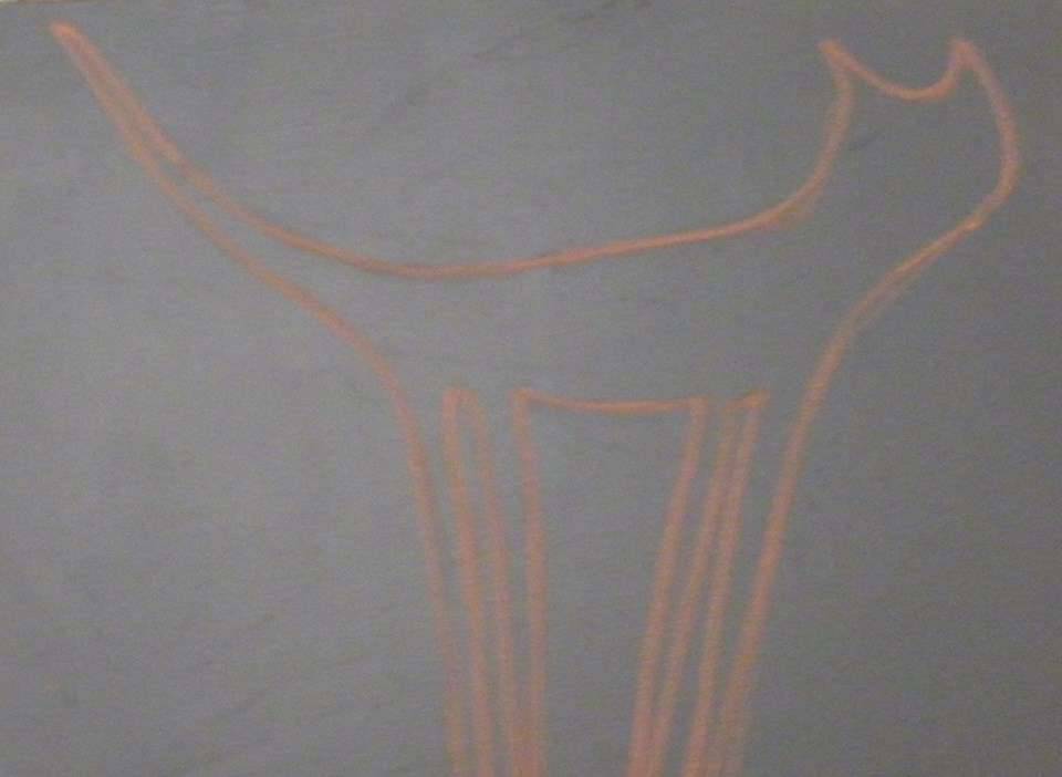 Ten obrazek jest jakby wyrwany ze snu. Na jasnym tle widzimy kontur kota, narysowany pomarańczową linią. Linia jest delikatna, jakby artysta jednym ruchem uchwycił esencję zwierzaka. Kot wygląda, jakby miał zaraz przeskoczyć z kartki prosto do naszych serc. Kompozycja jest minimalistyczna, co dodaje jej pewnej magiczności. Atmosfera obrazu emanuje spokojem i ciepłem, trochę jak ciepłe kakao w zimowy wieczór. Artysta użył techniki skromnej, co przypomina dziecięcą radość tworzenia. Ja bym powiedział, że to jest "happy cat". Patrząc na ten obrazek, można się uśmiechnąć - bo po prostu jest w nim coś radosnego. Można sobie wyobrazić, jak ten kot mruczy i zadowolony przeciąga się na słonecznej plamie światła. Dziecko pewnie by powiedziało "O, kotek!". I ja się zgadzam z tym dzieckiem. Obraz wywołuje uśmiech, a to przecież najważniejsze.