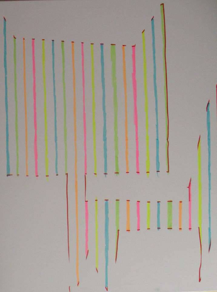 Obraz, który widzimy, to triumf prostoty i koloru. Wzory złożone z pionowych linii w intensywnych barwach - różowe, niebieskie, zielone i pomarańczowe - tworzą rytmiczny taniec na neutralnym tle. Kompozycja jest minimalistyczna, ale pełna energii. Coś jak radosna dziecięca zabawa - wyobrażam sobie, że mogłoby to być narysowane przez kogoś z naprawdę bogatą wyobraźnią. Jest tu pewna przypadkowość, a jednocześnie harmonia, co wprowadza widza w spokojny, a jednak ekscytujący stan umysłu. Obraz emanuje beztroską, prawie jakby chciał powiedzieć: "Don't worry, be happy". To uczucie jest wzmacniane przez neonowe odcienie, które przyciągają wzrok jak magnes. Technika artystyczna wydaje się prosta, gdzieniegdzie widać lekkie niedoskonałości w liniach, co dodaje dziełu charakteru. Jakby ktoś machał pędzlem z pewnym niedbalstwem, ale i pasją. Dzieło to budzi emocje poprzez swoją jasność i zabawność. Może skłaniać do refleksji nad znaczeniem szczęścia i prostoty w życiu. Patrząc na nie, poczułem przypływ pozytywnej energii, jakby świat na chwilę zwolnił. Plama koloru, którą można by uznać za błahą, przemienia się w fascynujące doświadczenie wizualne, które trudno zapomnieć.