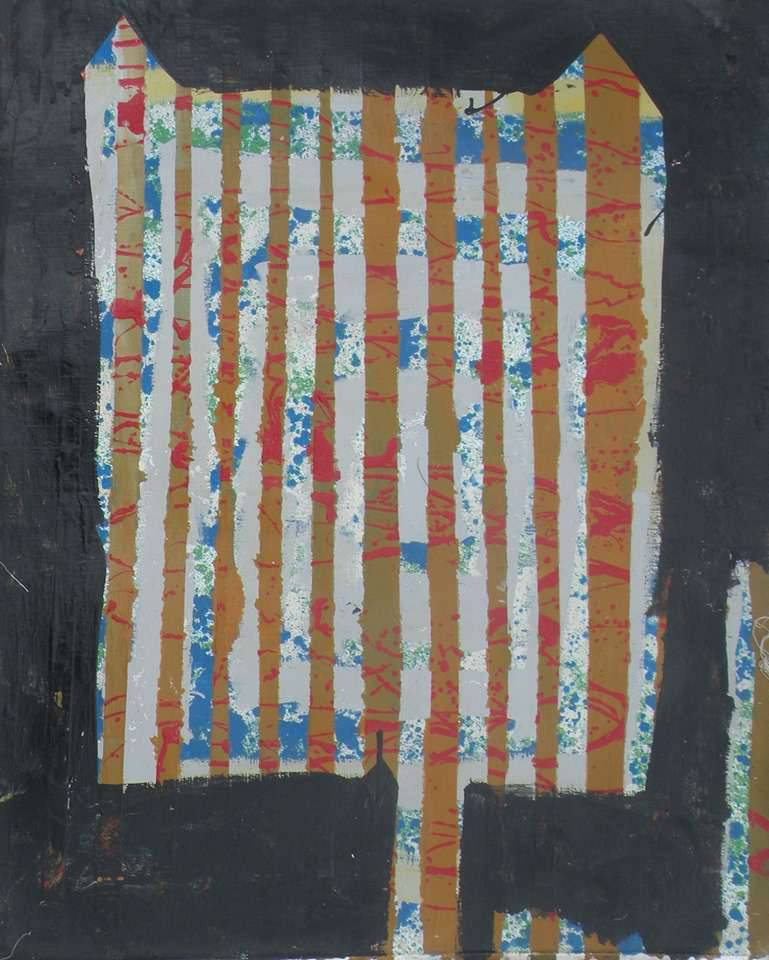 Obraz jest intrygującym połączeniem geometrycznych kształtów i żywych kolorów. Dominują pionowe pasy w odcieniach pomarańczu, błękitu i zieleni, które zdają się tańczyć na tle ciemnej, niemal czarnej powierzchni. Kompozycja ma coś z zaskakującej prostoty, a jednocześnie skomplikowaną strukturę, która przyciąga wzrok. Atmosfera obrazu jest tajemnicza, jakby kryła w sobie sekret, który odbiorca musi odkryć samodzielnie. Styl jest nowoczesny, z lekkim akcentem na abstrakcję, jakby artysta chciał bawić się formą i kolorem. Malunek przywołuje mieszankę emocji; od ciekawości po lekki niepokój. Dla kogoś oglądającego może przypominać fragmenty miasta lub rytmiczne odbicie natury w cyfrowym świecie. Look! To zdanie pisze 7-latek, bo widzę dom! Technika jest niejednorodna, z subtelnym naciskiem na ekspresję. Interpretacje mogą się różnić, lecz bez wątpienia obraz zmusza do refleksji, zachęca do zanurzenia się w jego barwny świat. To niemal jak codzienność w niecodziennym wydaniu, gdzie każdy kształt niesie swoją małą opowieść.