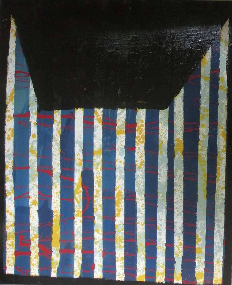 Na pierwszy rzut oka obraz tchnie tajemniczą energią. Mocne kontrasty między czarnym tłem a pionowymi pasami w odcieniach niebieskiego i bieli przyciągają wzrok. Przeplatane są one ciepłymi złotymi plamami i czerwonymi liniami, które dodają dynamiki. Kompozycja jest dość geometryczna, a jednocześnie dynamiczna, jakby artysta próbował uchwycić chaos w uporządkowanym świecie. Coś tutaj miga, coś chce się wyrwać. To trochę jak patrzenie przez kratę ku wolności. Obraz wydaje się w stylu abstrakcyjnym, z wyraźnym naciskiem na kolor oraz formę. Nieco przypomina dziecięcą zabawę w mieszanie barw, choć pełen jest emocji i przemyśleń. Użycie wyrazistych, kontrastujących barw buduje atmosferę napięcia, jakby coś się miało wydarzyć zaraz. Wow, co za rollercoaster. Techniką prominentną wydaje się być malowanie akrylem, co dodaje pracy tekstury i głębokości. Z kolei umyślnie nierówne krawędzie pasów sprawiają, że całość staje się bardziej ludzka i dostępna. Można mieć wrażenie, że patrzymy na coś w rodzaju bramy lub przejścia, zapraszającego nas do innego wymiaru. Ten obraz może w każdym wzbudzać inne uczucia — od nostalgii do ekscytacji. Ja czuję się jakbym zaraz miała wejść przez magiczną furtkę. Intrygujące.