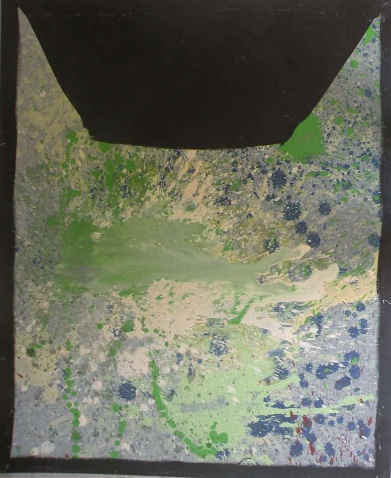 Obraz wydaje się być pełen chaosu, a jednocześnie kryje w sobie głęboką harmonię. Przeważają na nim plamy barw, głównie zieleni i niebieskiego, rozlewające się niczym kałuże po deszczu. Czarny prostokąt dominujący w górnej części obrazu przyciąga wzrok, nadając całości pewną tajemniczość i balansując resztę kompozycji. To jakby niebo o zmierzchu, pełne niewyraźnych cieni i tajemnic. Do you feel it? Atmosfera jest tutaj dość melancholijna, trochę nostalgiczna, ale i intrygująca. Artysta zastosował tu techniki action painting, w którym farba rozlewa się swobodnie, tworząc przypadkowe wzory. Krople i chlapania przywodzą na myśl ekscytację, jaką czuje dziecko odkrywające świat. To trochę jakby ktoś rzucił zielonym tortem w niebo! Interpretując ten obraz, można poczuć zarówno spokój, jak i pewien niepokój związany z nieprzewidywalnością życia. Kolory uspokajają, ale ich nieporządek może budzić refleksje nad chaosem naszych codziennych dni. Na obrazie można dostrzec zarówno dynamikę, jak i subtelną elegancję. Działa na zmysły niczym symfonia barw i form, wciągająca i nie pozwalająca oderwać wzroku. Porusza emocje, skłaniając do przemyśleń o naturze rzeczy i wewnętrznym spokoju, jaki możemy odnaleźć w najprostszych rzeczach.