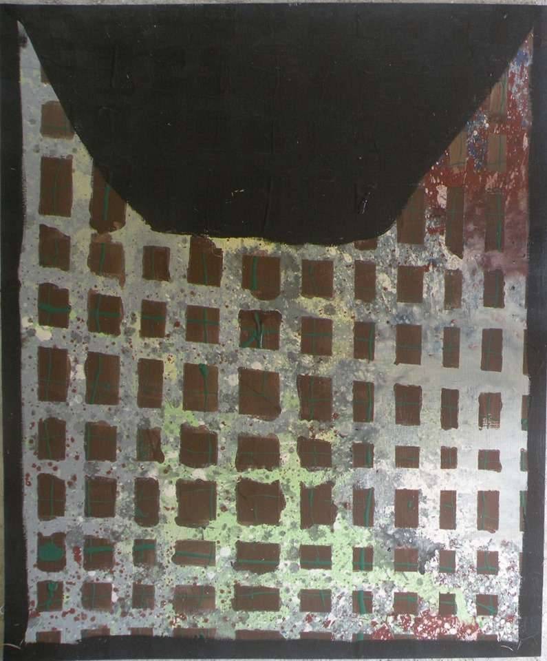 Obraz emanuje surową i enigmatyczną energią. Dominuje w nim ciemna paleta barw – brązy, szarości i czernie. Na pierwszy plan wysuwają się kwadratowe kształty, tworzące coś na kształt siatki czy muru, pokryte cieniem, który z góry narzuca się na resztę kompozycji. Ta powtarzalność, a może wręcz monotonność, tworzy rytmiczną strukturę, która stopniowo przeradza się w niesamowicie fascynujący chaos. Wow, wygląda to jak dom w nocy! Atmosfera obrazu – niby zagadkowa – może wprowadzać widza w stan zadumy. Można poczuć w nim pewien ciężar, ale i pewną intrygującą dynamikę. Technika artystyczna z wykorzystaniem grubej faktury i kontrastu zdaje się wołać: "Spójrz na to!". Dryfując między abstract i decay, artysta bawi się tu percepcją odbiorcy, zachęcając go do poszukiwania sensu w zagadkowym układzie kafli. Można się zastanawiać, co kryje się za tym wzorem – czasem przypomina to niekończącą się klatkę lub labirynt, z którego trudno się wydostać. Obraz może wywoływać mieszankę emocji – od odosobnienia, poprzez niepokój, aż po fascynację i chęć odkrywania głębszych treści. Patrząc na niego dłużej, można poczuć pewną melancholię, ale i dziwną satysfakcję z nieustannej gry kształtów i barw. Jest w nim coś tajemniczego i pociągającego, co sprawia, że nie można oderwać od niego wzroku. Stay curious, mówi jedno z tych kształtów w tle.