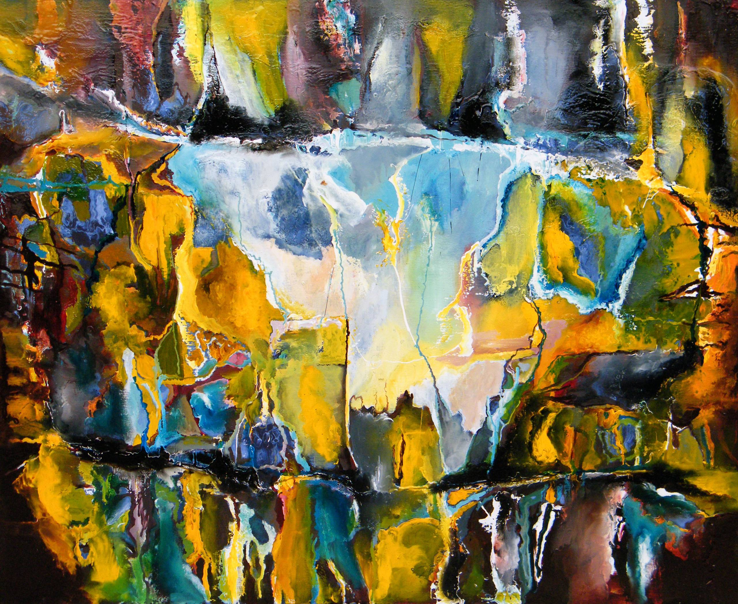Obraz emanuje pełnią barw, kolorami jak z zaczarowanej krainy pełnej tajemnic. Dominuje ciepła paleta żółci i pomarańczy, przeplatana chłodnymi błękitami i zieleniami. Kształty są nieregularne, czasem przypominają plamy, czasem linie, tworząc wrażenie spontaniczności i żywiołowości. Kompozycja jest dynamiczna, jakby uchwycona w ruchu, pełna kontrastów i nieoczekiwanych połączeń. Atmosfera obrazu to prawdziwy rollercoaster emocji. W jednej chwili czujesz spokój, zaraz potem ekscytację. Styl jest abstrakcyjny, artysta z wprawą użył techniki impasto, która dodaje faktury i głębi. Różnorodność struktur sprawia, że obraz wydaje się niemal trójwymiarowy, jakby chciał wyskoczyć z płótna prosto do naszego świata. Dla kogoś, kto patrzy na to dzieło, może to być podróż przez marzenia i wyobraźnię. To jak sen na jawie. Obraz może budzić skojarzenia z miejscem, gdzie fantazja spotyka rzeczywistość. "Ale czadowe kolory!" - powiedziałby siedmiolatek, zachwycony tą feerią barw. Czasem obrazy potrafią mówić więcej niż tysiąc słów, a ten wręcz krzyczy "look at me!" z każdym błyskiem światła na farbie. Patrząc na to dzieło, czuję radość i ciekawość odkrywania. Każdy ma prawo widzieć w nim coś zupełnie innego, a może właśnie to jest w nim najpiękniejsze.