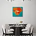 Nowoczesny kolorowy obraz kwiatowy nawiązujący stylem do pop-art. Praca jest minimalistyczna, ale równocześnie pełna pozytywnej energii. Obraz z kolekcji POP-KWIAT. Praca ma pomalowane boki, więc rama nie jest wymagana.