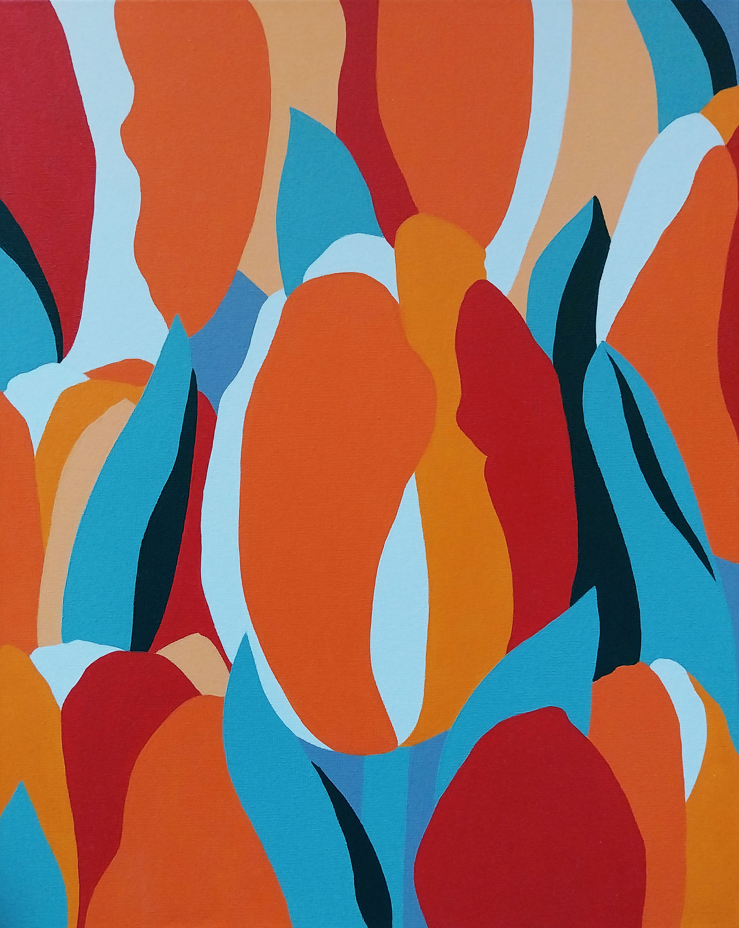 Bukiet soczystych barw w postaci tulipanów. Obraz ma pomalowane boki, więc nie jest wymagana rama.