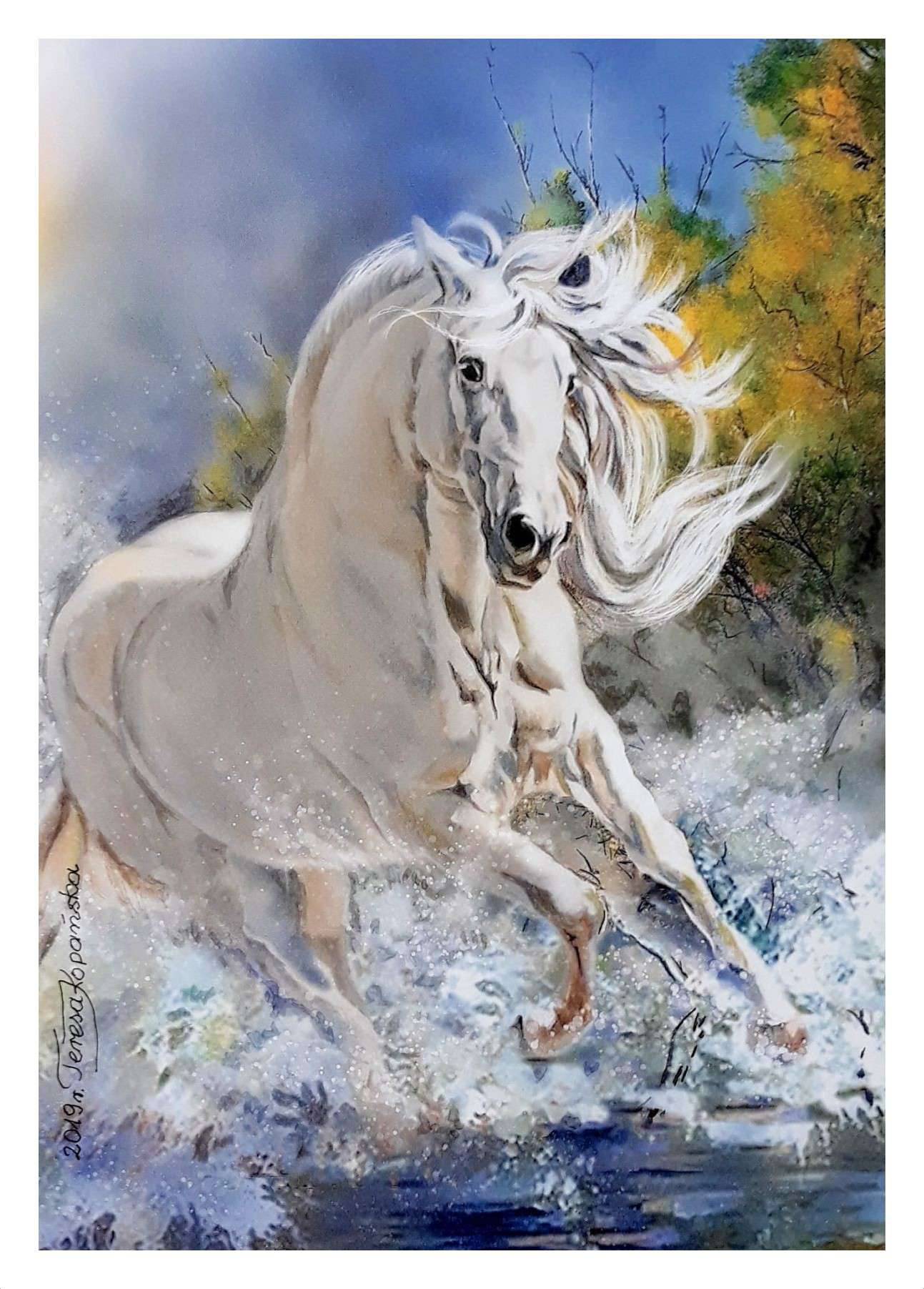 Nie zatrzymuj koni.. (akwarela 2019 r.) Wymiary A-4 Autor: Teresa Kopańska