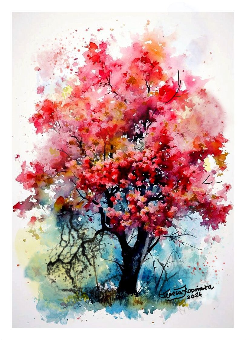 Samotne drzewo - Akwarela A4 2024 r. Malarstwo Teresa kopańska