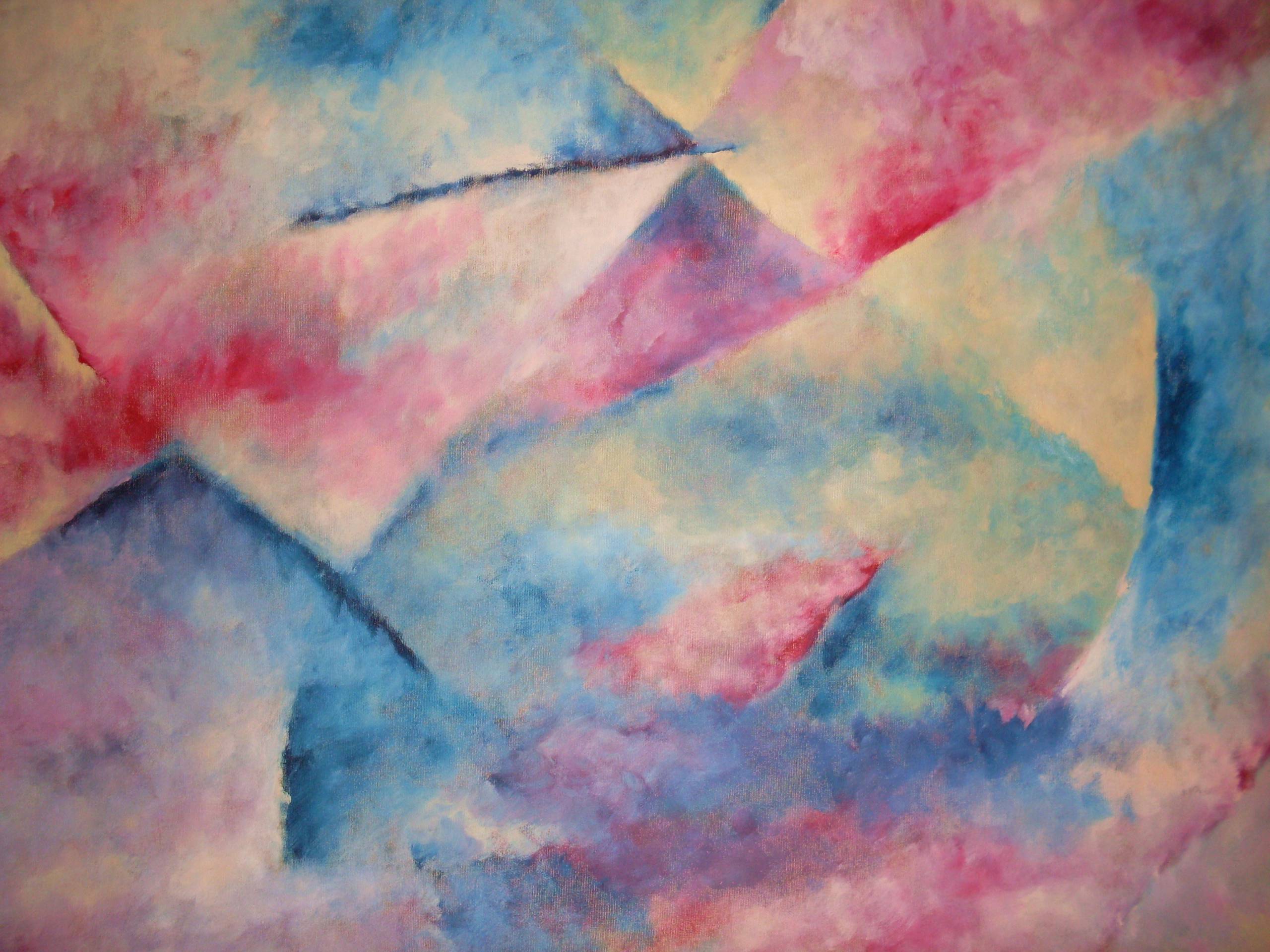 Na obrazie dominują pastelowe kolory: róż, niebieski i delikatna biel. Kształty zdają się być nieostre, jakby rozmyte chmurki na niebie. Kompozycja jest dynamiczna, pełna ruchu, a kolory przechodzą płynnie z jednego w drugi. Obraz emanuje uczuciem lekkiego zagubienia, ale i spokoju, jakbyś patrzył w niebo o świcie. Nastrój jest wręcz marzycielski, a wszechobecna delikatność dodaje mu eterycznego uroku. Styl przypomina impresjonizm, z charakterystycznymi pociągnięciami pędzla, które tworzą wrażenie ruchu i miękkości. Technika użyta przez artystę uwodzi odbiorcę, wciągając go do świata ukrytego w mgiełce kolorów. Czasem mam wrażenie, że te barwy zatańczą na płótnie, tworząc własną melodię. To takie trochę dreamlike, prawda? Oglądając to dzieło, można poczuć spokój, ale i jakąś tajemniczą tęsknotę za nieosiągalnym horyzontem. Dla mnie to wygląda jak miejsce, gdzie mieszkają sny. Małe dziecko mogłoby powiedzieć: „Patrz, to obraz tęczowych chmurek!” Osobiście czuję, że to trochę jak podróż do wnętrza czyjejś wyobraźni, pełnej barw i magicznych chwil. Wciąga, jak dobra książka, którą czytamy z zapartym tchem.