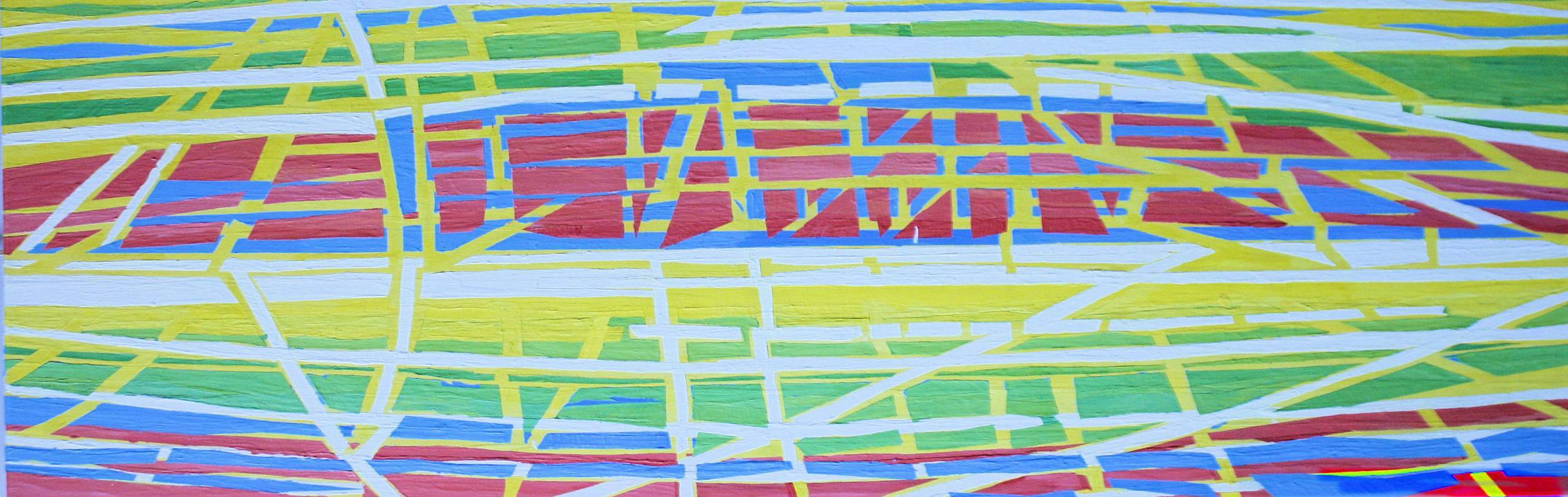 Obraz ukazuje zawiłą mozaikę kolorów – dominują zielony, żółty, niebieski i czerwony. Kształty są geometryczne, przypominają labirynt pełen krzyżujących się linii. Kompozycja ma w sobie coś z chaosu, ale i harmonii. Atmosfera emanuje energią, jest żywiołowa i przepełniona ruchem. Nastrój wydaje się jednocześnie spokojny i dynamiczny jak hałas miasta. Praca wydaje się inspirowana stylem abstrakcyjnym. Użyte techniki sugerują niesforną rękę artysty, być może farby zostały nałożone za pomocą pędzla lub noża. Wywołuje to uczucie spontaniczności. Obraz może przywoływać różne emocje. Jedni poczują się zagubieni w geometrycznym gąszczu, inni zachwyceni tą kolorową symfonią. Na myśl przychodzi mi taki labirynt z dzieciństwa, gdzie godziny mijają jak sekundy. Wow, ile tu się dzieje! Jedno spojrzenie wystarczy, aby poczuć rytm miasta. Im dłużej patrzysz, tym więcej szczegółów odkrywasz. Dla mnie to jak jazz – pełen improwizacji i niespodzianek. Ten vibrant chaos wciąga, nie puszcza i chce się ciągle wracać, aby odkrywać nowe ścieżki tej nieokiełznanej wizji.