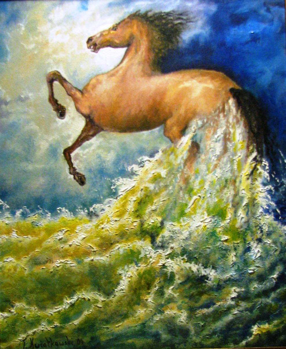 Jesteśmy świadkami narodzin Pegaza. Potomek Posejdona i Meduzy wyłania się z morskiej piany.