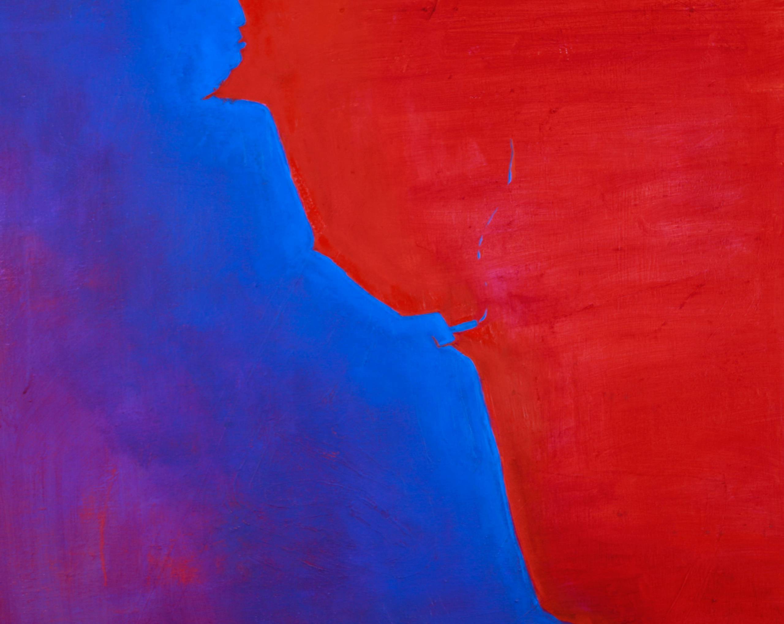Obraz stanowi złożoną grę kontrastów. Wyraźne płaszczyzny czerwieni i niebieskiego przenikają się w środkowej części, tworząc dynamiczną kompozycję. Czerwony po prawej jest intensywny, niemal gorący, podczas gdy niebieski po lewej emanuje chłodem i spokojem. Można poczuć, że te kolory opowiadają historię spotkania dwóch energii. Nastrój jest jednocześnie intensywny i uspokajający, trochę jak kłótnia, która na końcu prowadzi do harmonii. Artysta zastosował technikę malarską, która przypomina action painting, z odważnymi pociągnięciami pędzla dodającymi całości dynamiki. Ta technika sprawia, że obraz zdaje się prawie wibrować, pulsować w swoim własnym rytmie. Widz może odczuwać równocześnie zachwyt i konflikt, zanurzając się w emocjonalny wymiar dzieła. Wow, te kolory są jak ogień i woda, pomyślałby może siedmioletni obserwator. Dla mnie to trochę jak myśli i uczucia, które w nas kotłują – chaos i spokój splecione razem. Artysta wykorzystał efekt 'clash' tych barw, by przyciągnąć uwagę odbiorcy i skłonić go do zatrzymania się na dłużej. Każdy, kto spojrzy na ten obraz, może poczuć frywolną zabawę emocjami – jak huśtawka w parku w letnie popołudnie.