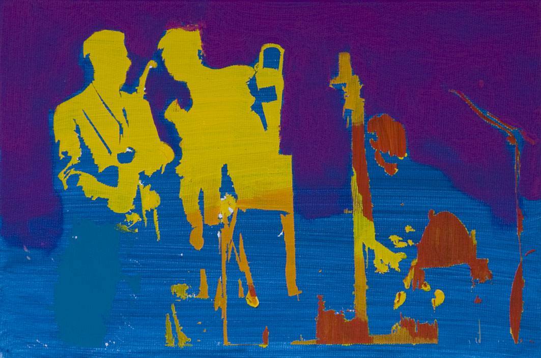 Obraz, który mamy przed sobą, to prawdziwy kalejdoskop kolorów. Dominują tu intensywne fiolety i niebieskości kontrastujące z żywymi odcieniami żółci i pomarańczu. Na pierwszy rzut oka wydaje się być nieco abstrakcyjny, ale po chwili dostrzec można zarys postaci. Sylwetki dwóch muzyków i zestaw perkusji na scenie tworzą dynamiczną kompozycję. Atmosfera obrazu to połączenie energii jazzu i nostalgii klubowej nocy. Styl artysty to coś pomiędzy impresjonizmem a współczesną abstrakcją, co sugeruje, że użył pędzla i quick, spontanicznych pociągnięć farbą. Ta technika dodaje całości pewnej surowości i spontaniczności. Gdy patrzę na to dzieło, czuję przypływ radości, jakby muzyka z obrazu docierała do mnie bezpośrednio. Moje myśli dryfują ku latom 60., kiedy jazz królował, a życie było bardziej kolorowe. Chciałbym być tam teraz! Nawet mój wewnętrzny dzieciak mówi: "To wygląda jak fajna impreza!". Obraz jest pełen emocji i wymusza na odbiorcy chwilę refleksji nad tym, jak sztuka potrafi oddać dźwięki w formie wizualnej.