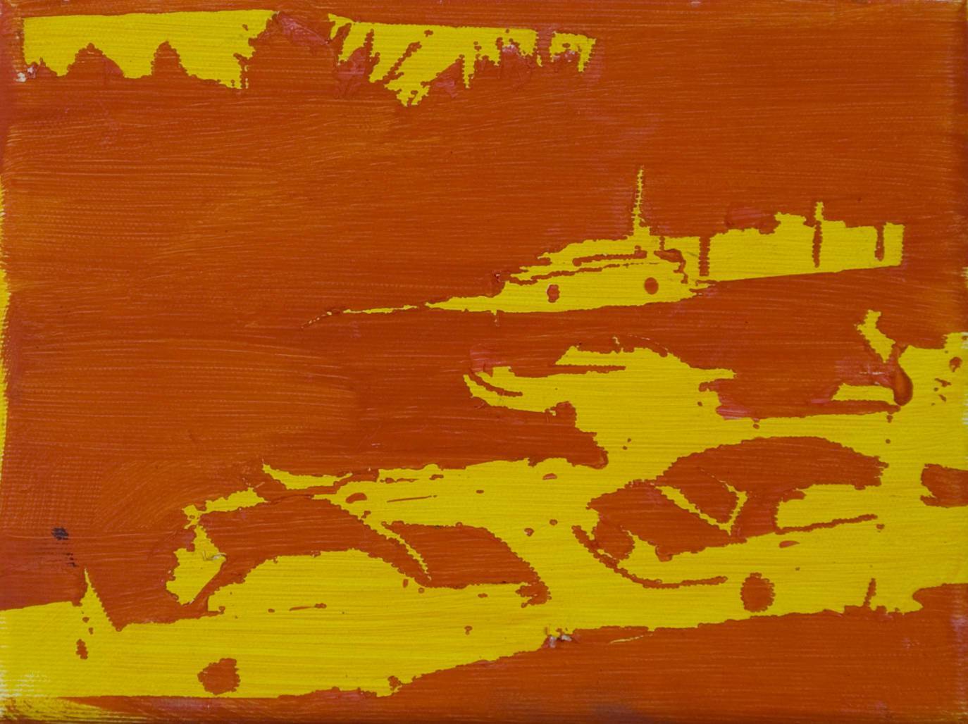 Obraz tętni intensywnymi kolorami, które przyciągają wzrok jak magnes. Ciepłe pomarańczowe tło kontrastuje z jaskrawymi, żółtymi plamami, tworząc dynamiczną kompozycję. Linie i kształty są płynne, ale niejednoznaczne, co nadaje obrazowi tajemniczości. Atmosfera dzieła jest pełna energii i ruchu, jakbyśmy patrzyli na coś, co zaraz wybuchnie w wulkanie emocji. Wow, takie kolory są jak wesołe miasteczko! Artysta zastosowal technikę, która przypomina pop art lub abstrakcyjny ekspresjonizm. Całość wydaje się być prostym, ale wyrafinowanym zestawieniem form, ready to surprise. Użycie jaskrawych barw i ostrych krawędzi nadaje obrazowi nowoczesny, żywy charaker. Obraz pobudza do refleksji, może symbolizować niepewność lub przełomowy moment w życiu. Patrząc na niego, czuć dreszcz ekscytacji i ciekawości. To dzieło może zachęcić do chwilowego oderwania się od rzeczywistości i zanurzenia w świecie wyobraźni. Moje serce bije szybciej, patrząc na te kolory - są jak wspomnienia letnich dni pełnych przygód.