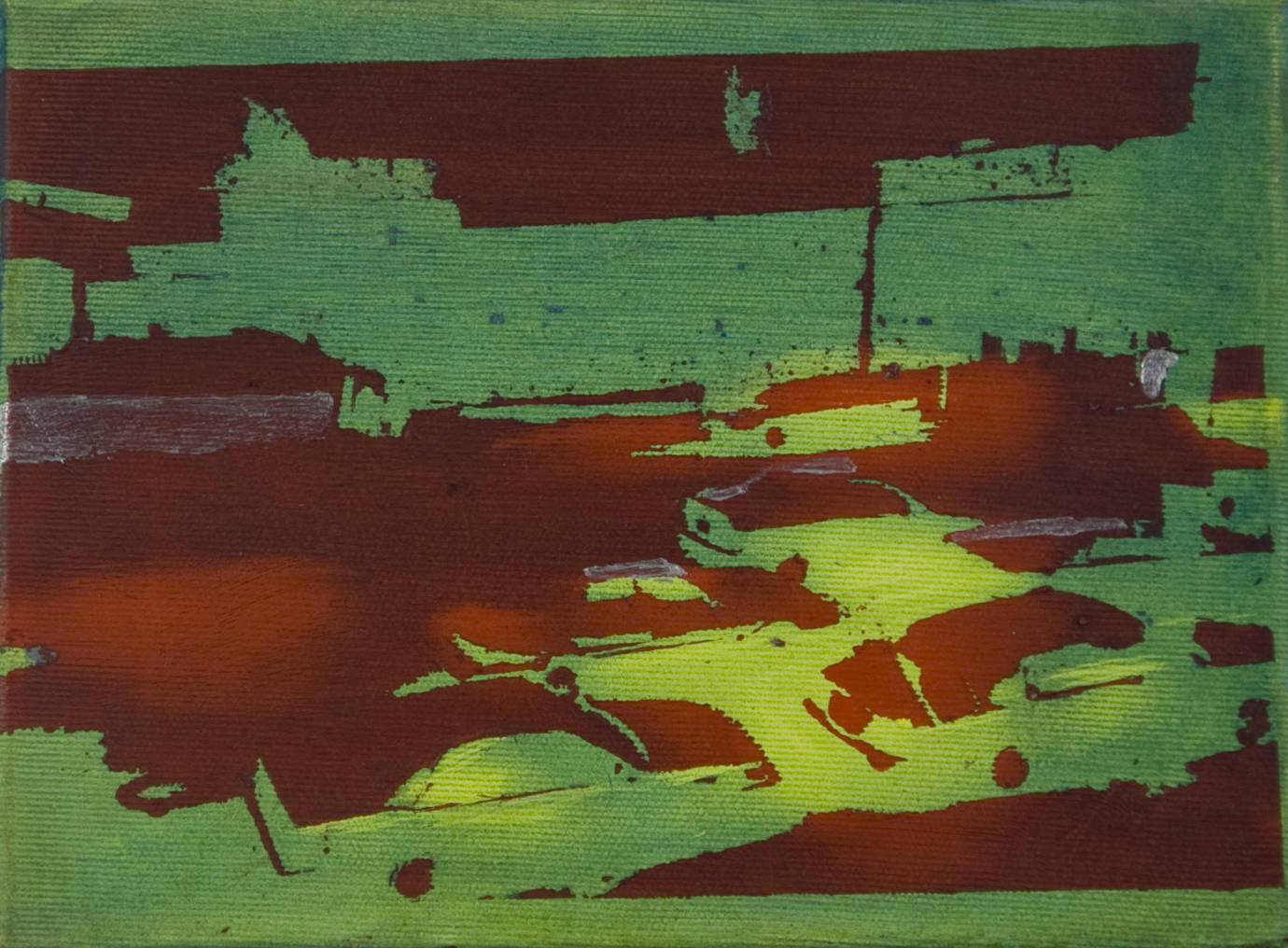 Obraz przepełniony jest kontrastującymi kolorami, gdzie zieleń zderza się z ciepłymi odcieniami brązu. Te plamy barw tworzą kompozycję pełną energii i dynamiki, choć na pierwszy rzut oka wydaje się chaotyczna. Artysta zastosował technikę, która przypomina malarstwo olejne, z wyraźnymi pociągnięciami pędzla, tworzącymi fakturę niemalże trójwymiarową. Na środku obrazu można dostrzec kształty przypominające abstrakcyjne formy, być może nawiązujące do miejskiego krajobrazu. Nastrój tego dzieła jest nieco melancholijny, ale z nutą tajemnicy, prawie jak w nocnym mieście. A może to poranek? W końcu jakieś dziecko mogłoby powiedzieć: "To wygląda jak plac zabaw dla robotów!". Taki właśnie vibe rozbudza ta grafika. Element chaosu jest uspokajający w swej niejasności. Interesujące jest, jak ten obraz może wywoływać różne emocje u różnych widzów. Może to echo wakacyjnego dnia? Może odwrotność klarowności, która zezwala na własne interpretacje. Czasem, patrząc na to, czuję jakąś nostalgiczną tęsknotę, jakby na skraju pamięci. Obraz emanuje abstrakcyjnym urokiem, „mówiąc” do nas w języku sztuki nowoczesnej. To jedno z tych dzieł, nad którym skupiasz się na dłużej, próbując rozgryźć jego tajemnice. Wow! Tak, dokładnie to jedno słowo po angielsku idealnie oddaje ten moment zrozumienia czy też raczej jego brak, pełen zaskoczenia i zdziwienia.