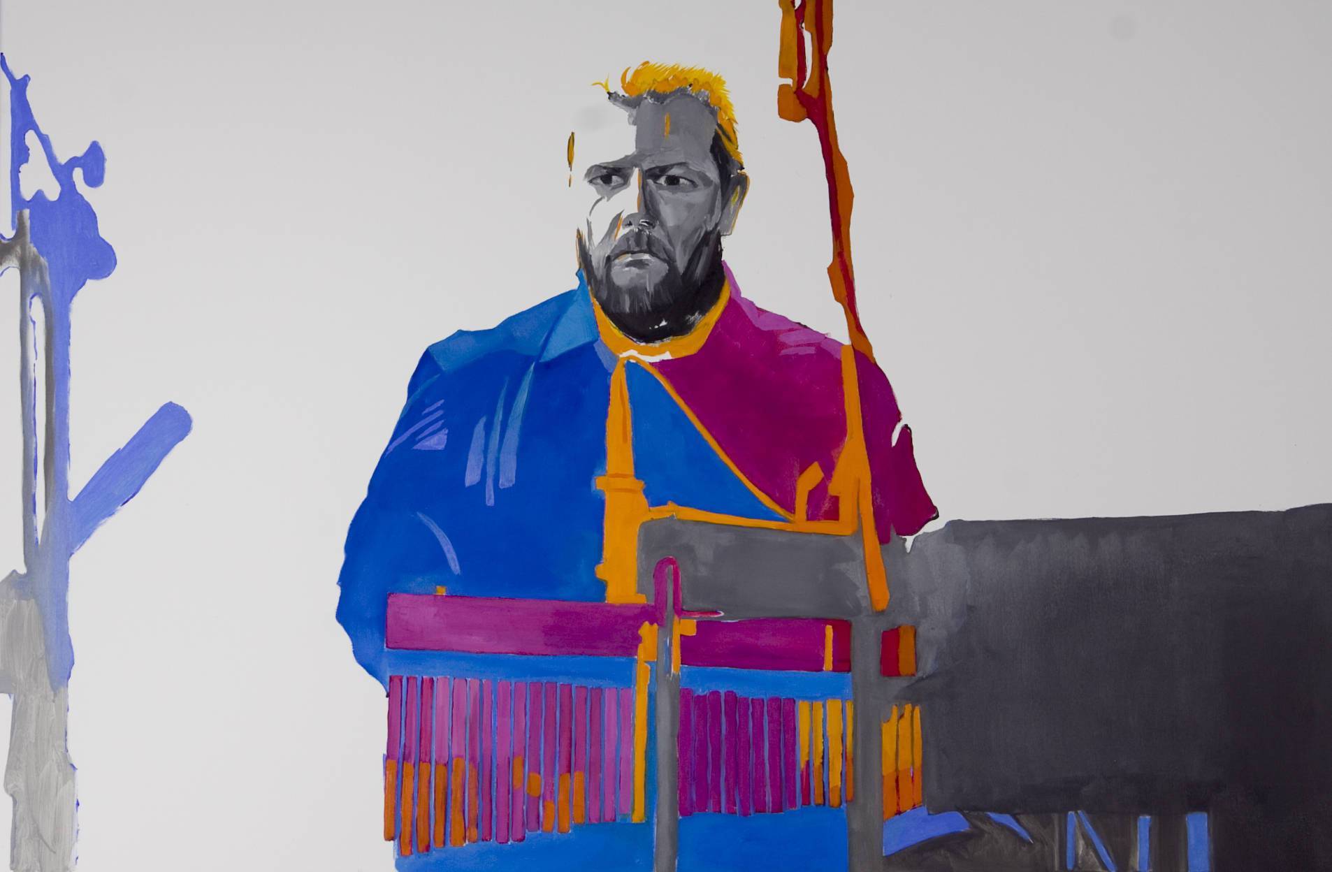 Obraz rzuca się w oczy odważnym zestawem kolorów. Dominują intensywne błękity i fiolety, które kontrastują z pomarańczowymi i czerwonymi akcentami. To robi naprawdę energiczne wrażenie. Kształty są geometryczne, z ostrymi liniami, które dodają całości dynamiki. Postać na pierwszym planie sprawia wrażenie zamyślonej, co nadaje obrazowi melancholijny nastrój. Atmosfera jest trochę jak z gry komputerowej, takiej fancy i nowoczesnej, a jednocześnie skłaniającej do refleksji. Artysta użył techniki mieszanej, łącząc tradycyjne malarstwo z nowoczesnymi efektami graficznymi. Emocje? Jakbym patrzył na moment zawieszenia, na chwilę przemyśleń, która zaraz ma przynieść jakieś odkrycie. To mnie uderza. Może to zachęta do zastanowienia się nad własnymi wyborami. Kolory również są jak emocje – żywe i wyraźne, ale czasem przytłaczać mogą. I czuję, jakby obraz mówił: "Hej, spójrz na mnie, zastanów się". Dzieciak by pewnie powiedział: "Lubię ten niebieski!". Mało tu prostoty, a jednak jest coś, co przyciąga i nie pozwala oderwać wzroku. Świetny sposób na przedstawienie złożoności ludzkiej natury w tak nowoczesnym wydaniu.