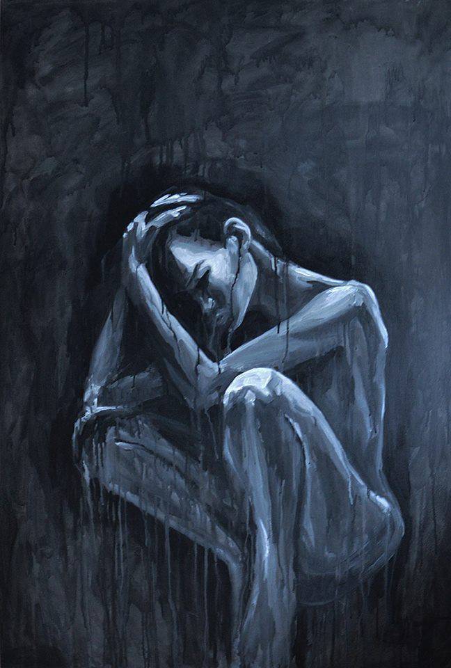 Na obrazie dominuje ciemna paleta kolorów, głównie odcienie czerni i szarości. Postać, ujęta w pozycji skulonej, zdaje się być malowana płynnie, z finezją. Wydaje się, że każda linia to struga melancholii. Przyciąga wzrok białe światło padające na ramiona i kolana, podkreślając dramatyzm sylwetki. Zacieniające się tło tworzy aurę tajemnicy, a może i smutku. To dzieło emanuje przygnębieniem, ale i pewną intymnością. Technika artystyczna jest surowa, trochę jakby ktoś malował z użyciem pędzla od mopa. Myślę sobie – wow, jakiegoś geniusza to musiało być dzieło. Może niektórych widzów malunek wprowadza w stan zadumy, zatrzymania na chwilę. Emocje są namacalne, prawie że można je dotknąć. To "silence" dzieła jest aż krzyczące. W stylu autora można wyczuć impresjonizm, choć jest tu i coś z ekspresjonizmu. Mały Bartek powiedziałby: "Ktoś się smuci". Uderza mnie bezradność, która promieniuje z tego obrazu. Coś pięknego w tej szarości, która przedziera się przez uczucia.