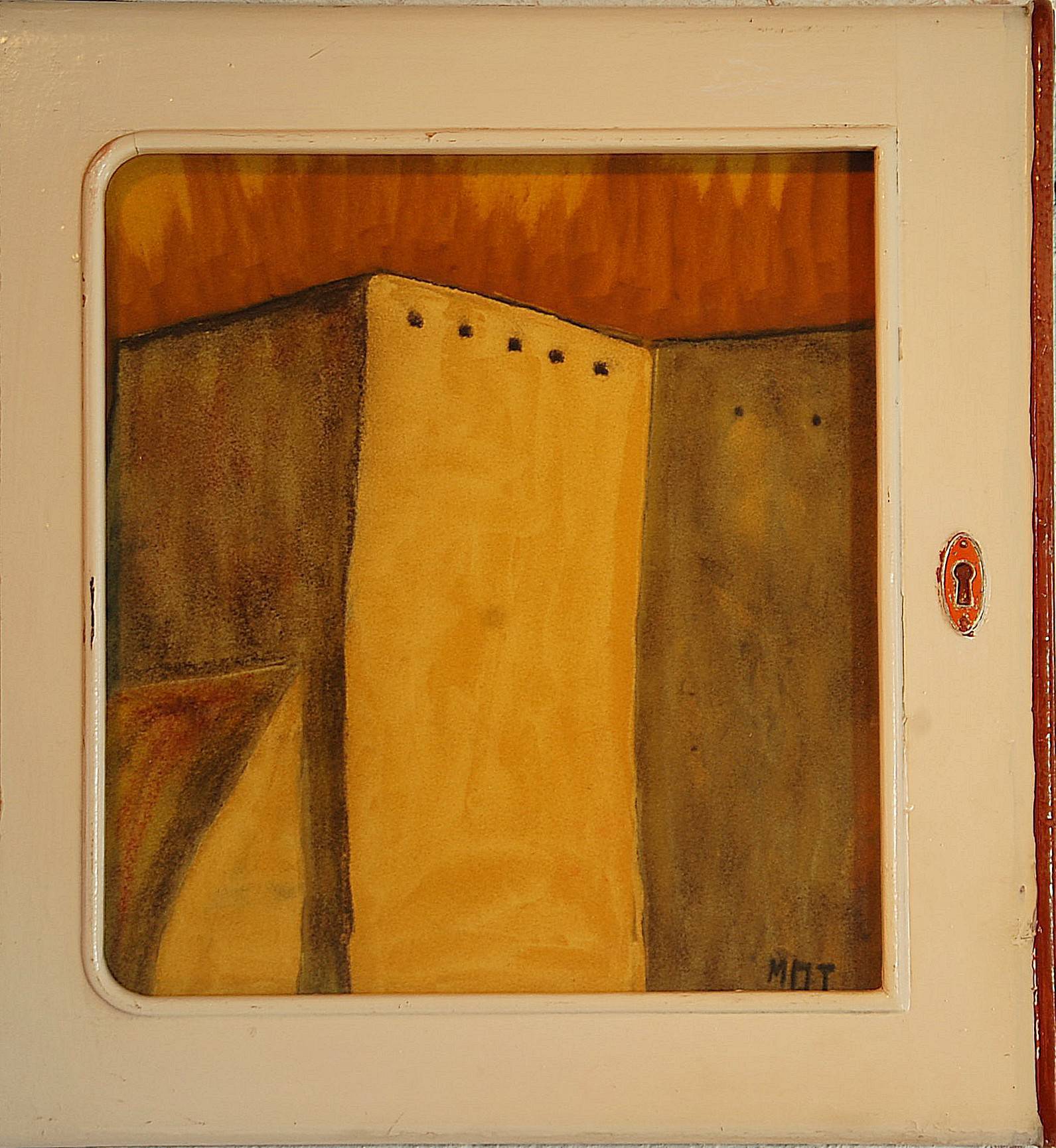 Obraz zgłoszony do udziału w VIII ART NAIF FESTIWAL. Akryl, pastel, technika własna. Namalowany na płycie, oprawiony w drewniane drzwiczki starego kredensu - kolor kremowy. Szyba antyrefleks.