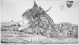 The monumental characters that came into being under his brush, with their dresses woven from cities, or these amazing dreamy chambers of unreal worlds, both conferred the artist devoted collectors around the world.