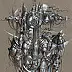 akwarela, akryl i piórko na papierze, format 30x21 cm (w ramie 46x53 cm)