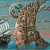 "Podróż w stronę śniącego księżyca", olej na płótnie, format 60x60 cm (w ramie 90x90 cm) Na obrazie dominują ciepłe odcienie błękitu i różu, które nadają mu spokojny, niemal magiczny nastrój. Centralny punkt to twarz kobiety, której włosy przybierają formę skomplikowanej architektury. Budowle wplatające się w jej fryzurę zachwycają szczegółowością, przypominając weneckie pałace i gotyckie zamki. To kompozycja pełna lekkości i wizji, jakby artysta przeniósł nas do świata snu, gdzie rzeczywistość miesza się z fantazją. Styl jest surrealistyczny, co widać w nieoczywistej symbiozie ludzkiego i architektonicznego. Artysta zastosował precyzyjne pociągnięcia pędzla, starannie dbając o detale. Okręt na wodzie, płynący ku twarzy, zdaje się być symbolem podróży do nieznanego, a jednocześnie jest pełen nostalgic dream-like quality. Obraz budzi uczucie odkrywania. Chciałbym wejść do tego świata, odkryć jego tajemnice. Dla dziecka, to miejsce, gdzie księżniczki mieszkają w magicznych zamkach na oceanie. Mimo drobnych niedoskonałości perspektywy, dzieło wywołuje uśmiech i ciekawość. Co za fantastyczny świat!