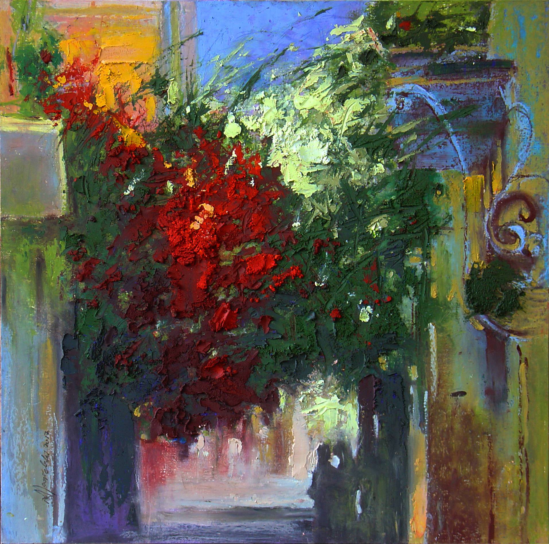 Obraz olejny, oprawiony, werniksowany, malowany po pobycie na wyspie Syros. Powstał w 2016 roku.