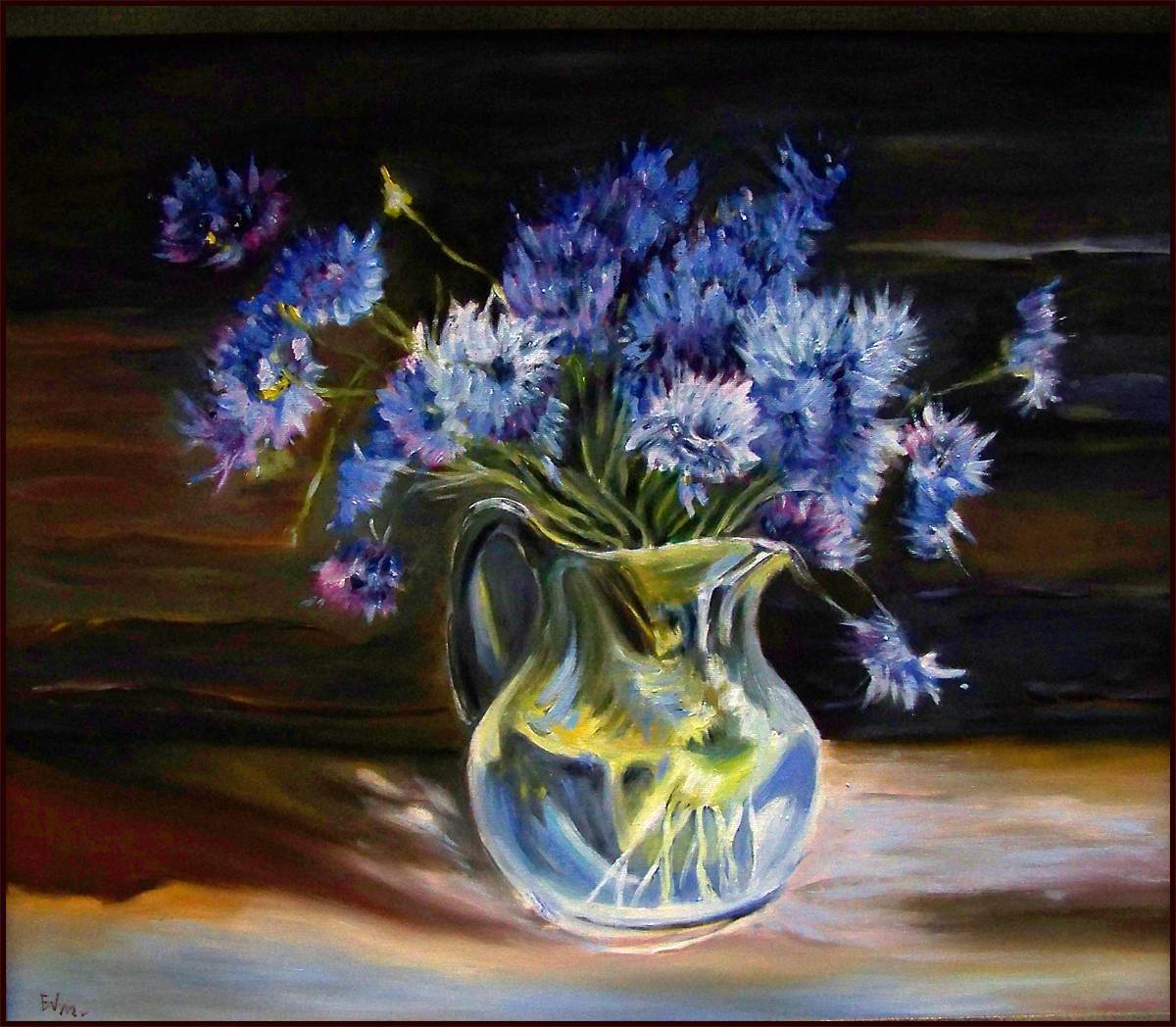 Obraz brał udział w indywidualnej wystawie w 2017 r. w Domu Kultury Polskiej w Wilnie pt "Kwiaty ojczyste"; Obraz oprawiony w drewnianą ramę szer. 7cm ,