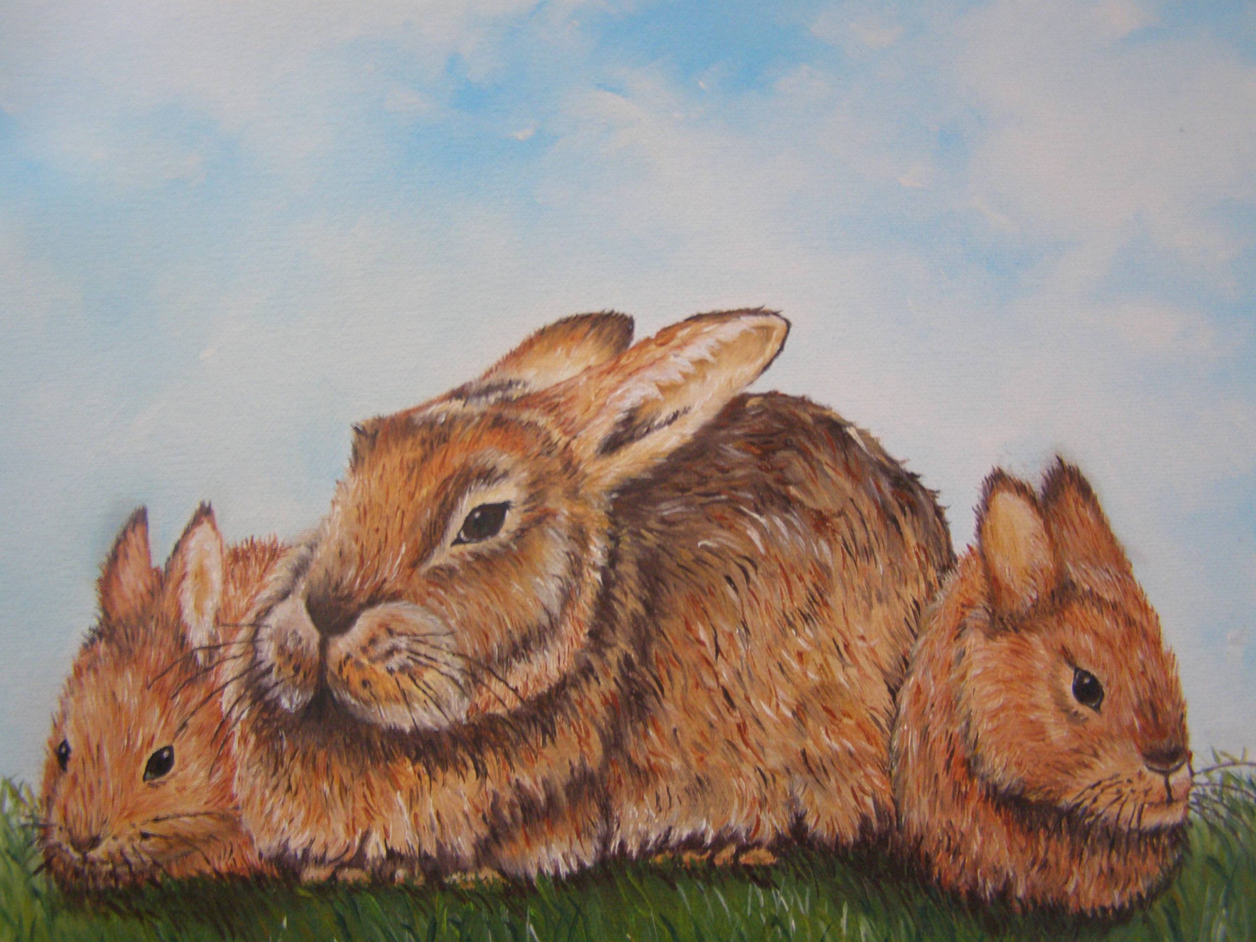 Na tym uroczym obrazie widzimy trójkę królików, które leżą sobie spokojnie na trawie. Dominują delikatne odcienie brązów i zieleni, tworzące ciepłą i przyjazną atmosferę. Gdzieniegdzie widać niebieskie niebo w tle, które dodaje obrazu głębii. Kompozycja jest bardzo harmonijna, a króliki wyglądają, jakby były w samym sercu wiosennego dnia. Malarz użył łagodnych pociągnięć pędzla, co nadaje futerku królików miękkości i puszystości. Styl bliski impresjonizmowi sprawia, że całość emanuje spokojem i ciepłem. Technika artysty pozwala niemal poczuć dotyk ich mięciutkiego futra na własnej skórze. To jakby chill murowany. Obraz budzi w widzu uczucie nostalgii i spokoju. Czy nie tak wygląda beztroskie dzieciństwo? Patrząc na te króliki, można poczuć, jak czas zwalnia, a wszystkie codzienne troski stają się nieistotne. Łapki królików delikatnie wtapiają się w trawę, jakby były częścią tego idyllicznego świata. Myślę, że te króliki mogłyby być bohaterami bajki dla dzieci. Wiesz, takiej, w której przygody kończą się zawsze dobrze. "Królik jest puszysty i miękki" powiedziałoby dziecko, wskazując palcem na obraz. Jeśli miałbym określić ten obraz jednym słowem w języku angielskim, powiedziałbym "cozy". Tak, dokładnie. To czuje się patrząc na te spokojne stworzenia.