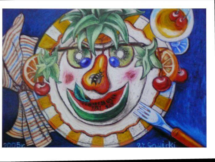 Uśmiechnięta twarz ułożona z owoców na talerzu