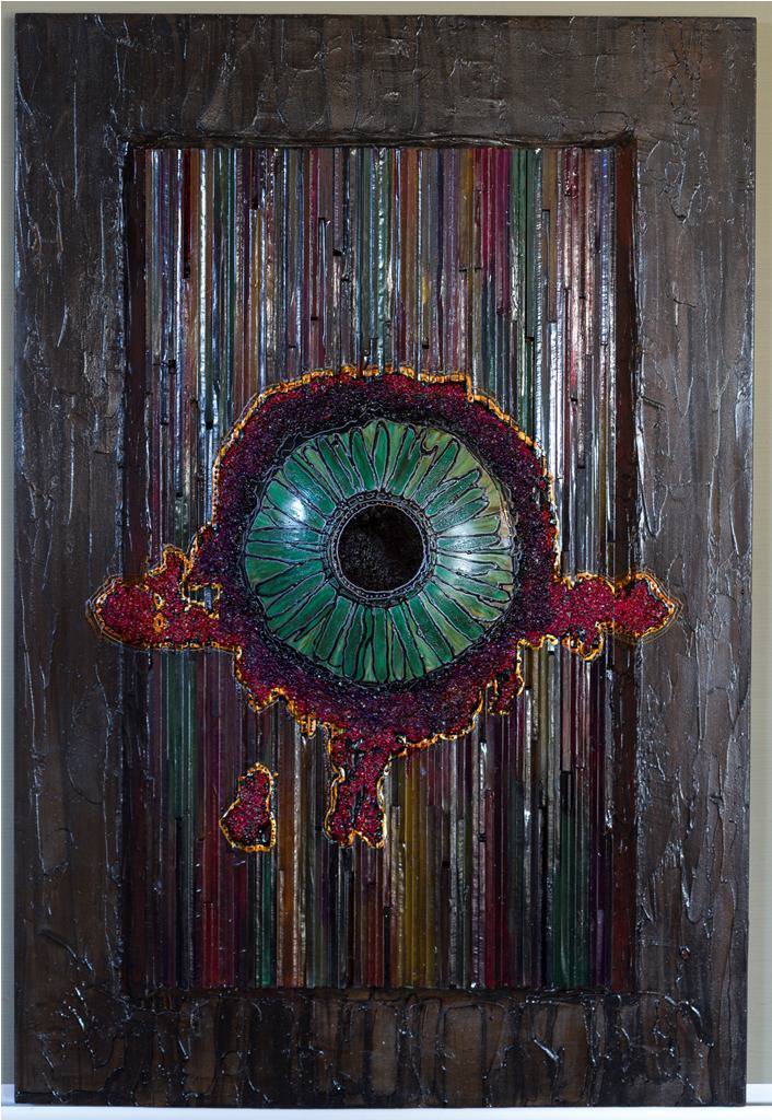 Technika własna, akryl, szkło, obraz przestrzenny.