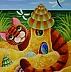 Obraz tętni życiem i kolorami. Dominują tu ciepłe odcienie żółci i pomarańczu, które harmonijnie kontrastują z zielenią i błękitem. W centrum uwagi jest uroczy kot o wielkich zielonych oczach, który wydaje się wychylać ze złocistej wydmy piaskowej. Wokół niego unoszą się ważki, a ich skrzydła błyszczą w słońcu, dodając lekkości i ruchu całej scenie. Uśmiech kota odnosi wrażenie beztroski, jakby cała scena była jednym wielkim placem zabaw. Atmosfera obrazu jest radosna i nieco surrealistyczna. Taki nastrój przywodzi na myśl dziecięce wspomnienia lata, wakacji i zabaw na plaży. Jest to dzieło, które wydaje się mówić: "Carpe diem!" Styl jest czysto baśniowy, przypominający ilustracje z książek dla dzieci. Może wywoływać uczucie nostalgii i odprężenie, jakbyśmy wracali do czasów, gdy wszystko było prostsze. Artysta używa grubo nakładanego farby, co dodaje tekstury i głębi. Patrząc na obraz, można się uśmiechnąć. Jak napisałby 7-latek: "Mój kot chciałby tu być". Wiesz co? Wygląda na to, że światło na tym dziele tańczy. To prawda, kolory wręcz śpiewają i opowiadają historię, która jest "happy". Obraz jest zarazem prosty, jak i pełen szczegółów, a światło i cień idealnie podkreślają formę i treść. Urok tego obrazu tkwi w jego zdolności do wywoływania emocji i ożywiania wspomnień - takim, które pozostaje z tobą na długo.
