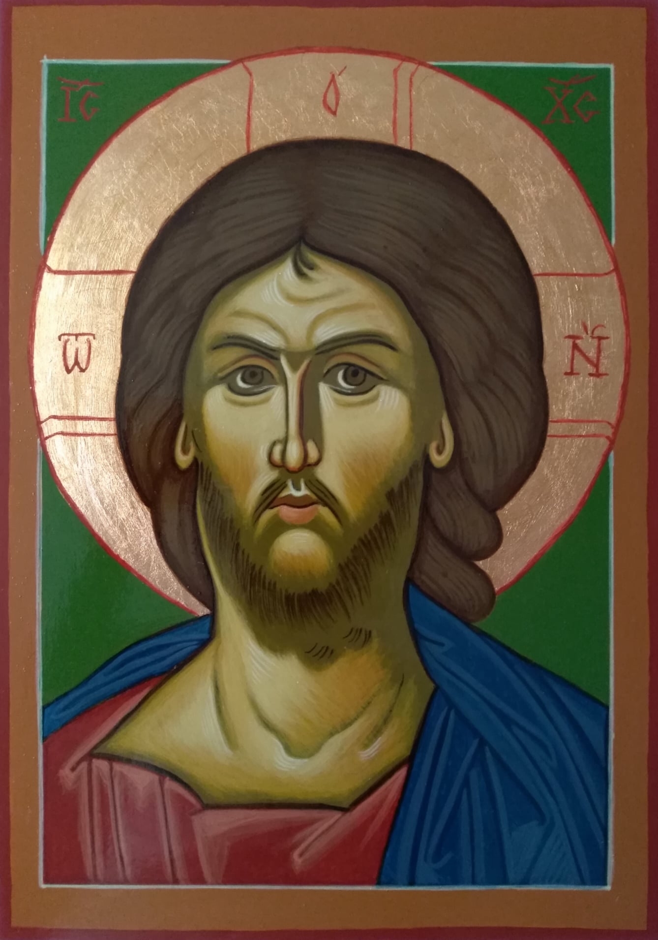 Ikona przedstawiająca Jezusa Chrystusa Pantokratora napisana temperą jajeczną na desce lipowej, 21 x 29.7 cm, lewkas, 2024 r.