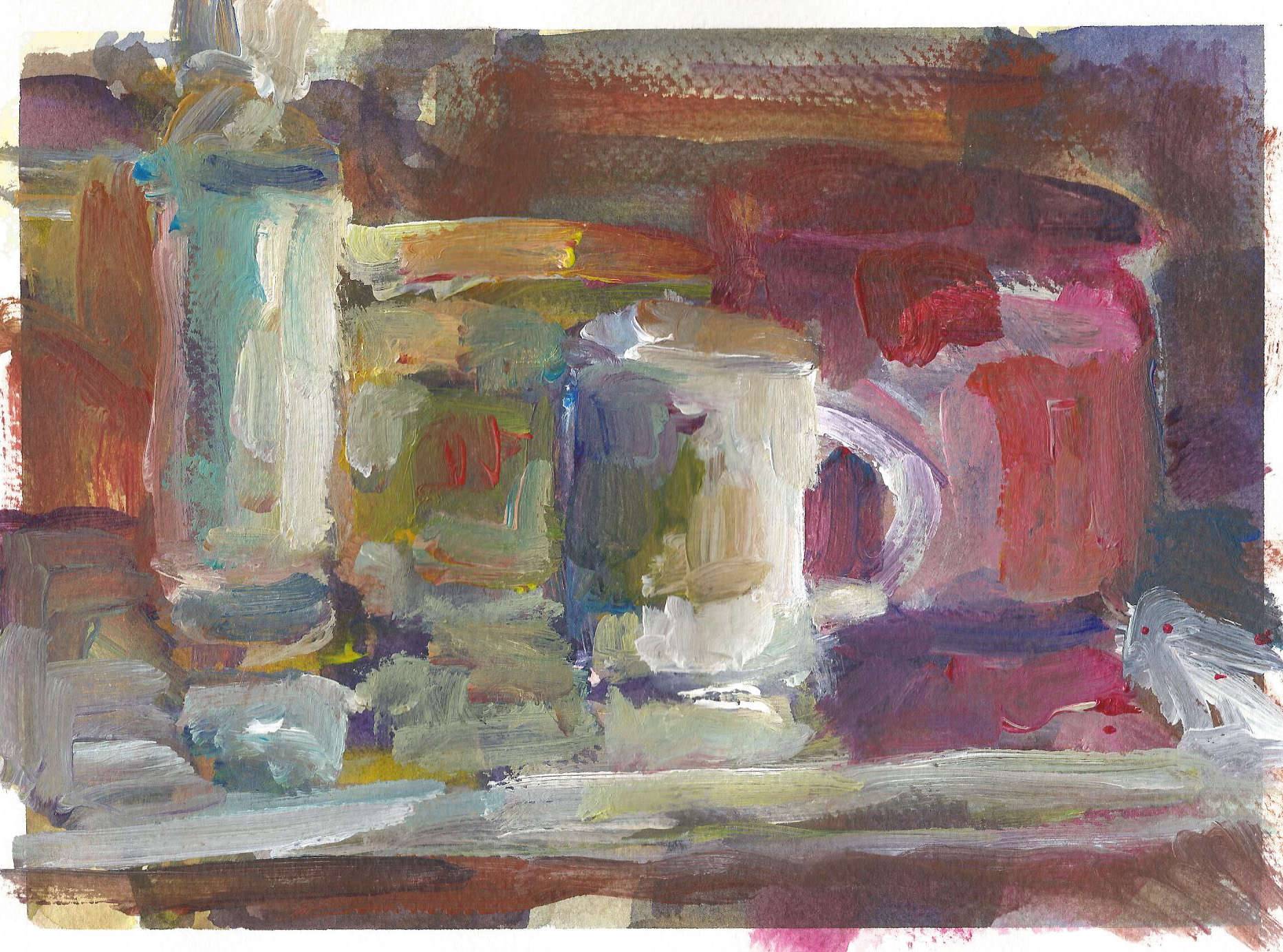 Praca została stworzona w technice akryl na tekturze introligatorskiej, sygnowana na odwrocie pracy, 2021 r.