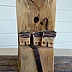 Krajobraz na skraju wsi wykonany z materiałów wtórnych tkj. kawałki pordzewiałego metalu,gwoździ, kawałki drewna. Podstawą kompozycji jest odcięty fragment belki pozyskany podczas rozbiórki starego domu.Ciekawostką tej pracy jest mały element belki...wyjmowany kołek Wymiary: 13x 23,5 cm Oprawa: Drewno Rok powstania: 2023