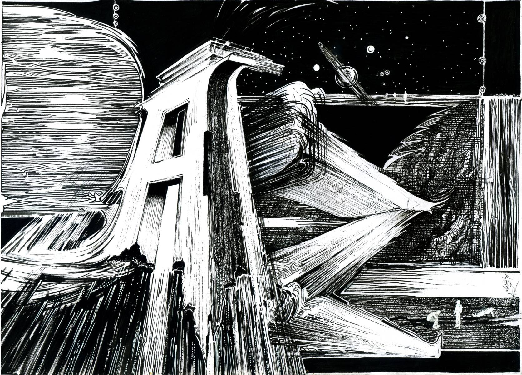 Rysunek tuszem czarnym i białym. Oryginał. Podpisany.