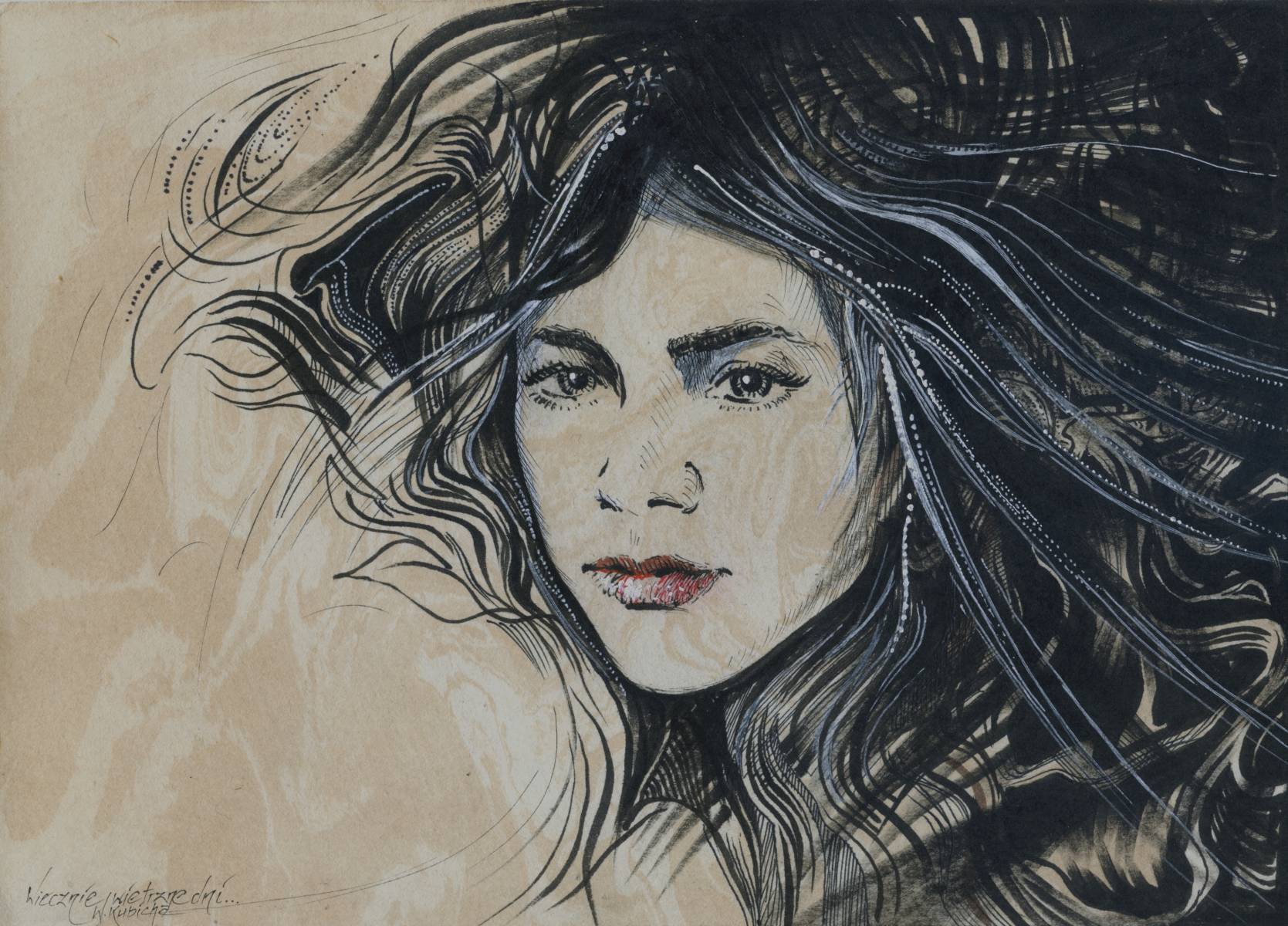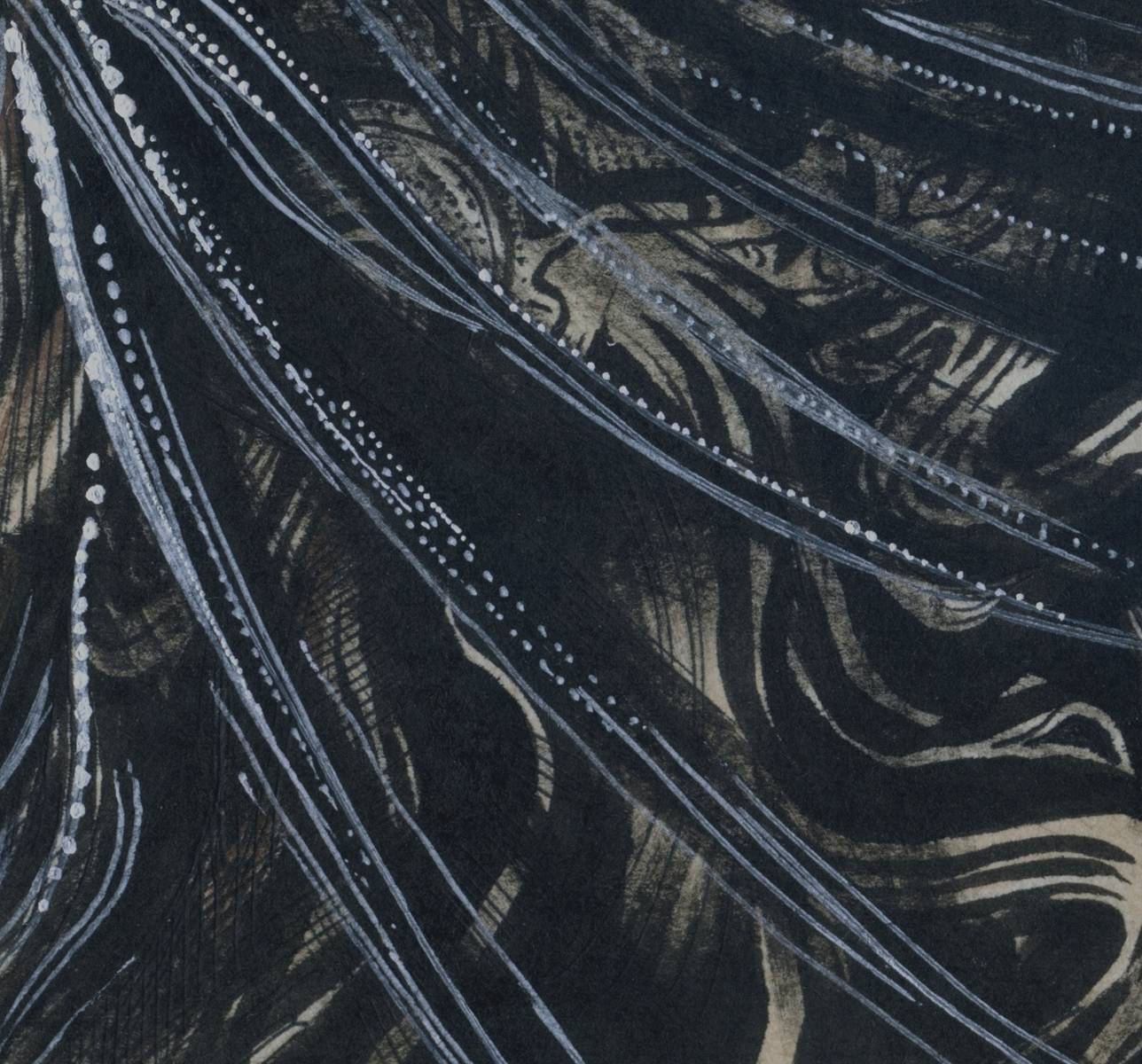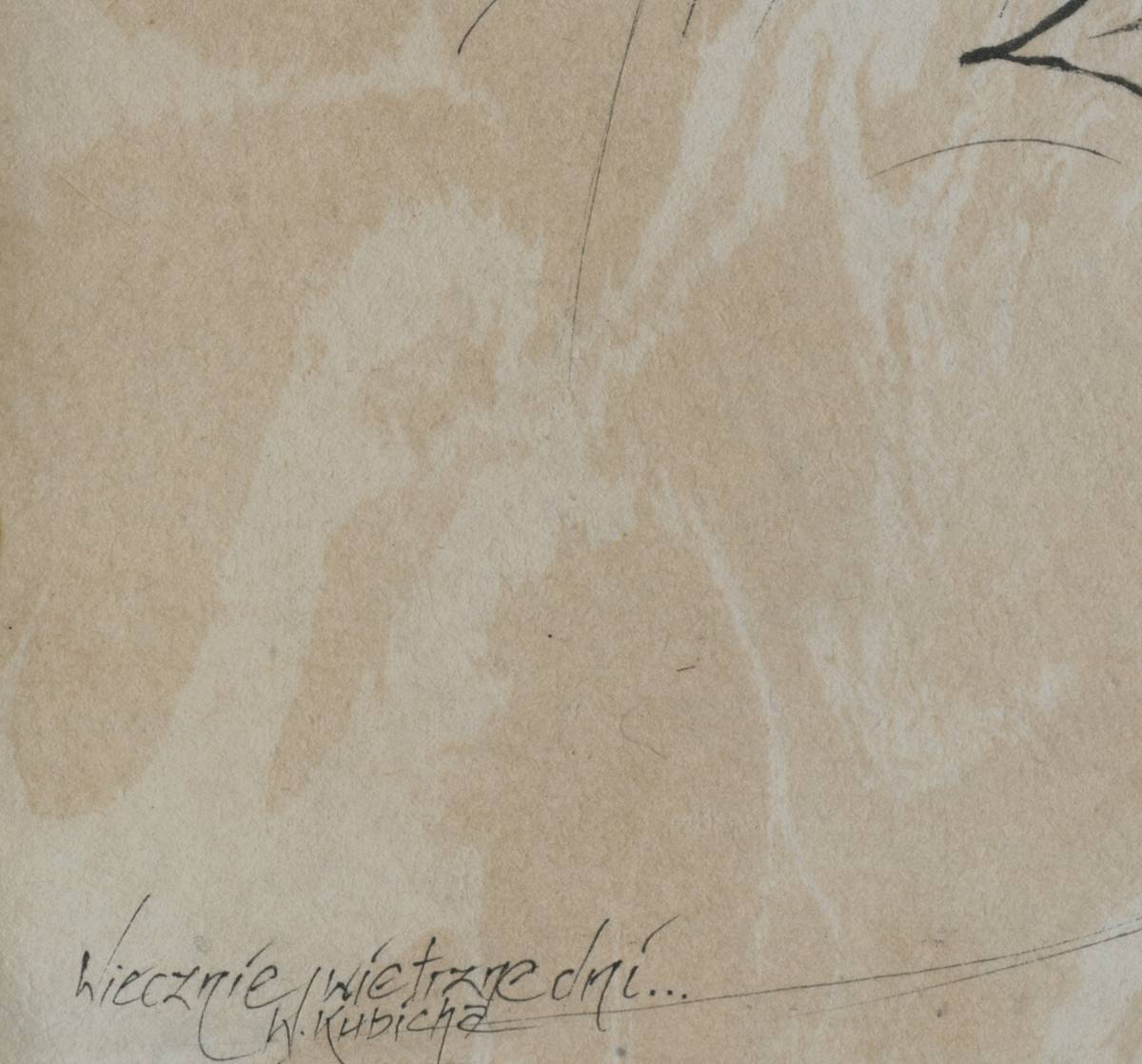 Rysunek tuszem na ręcznie marmurkowanym papierze. Oryginał. Podpisany.