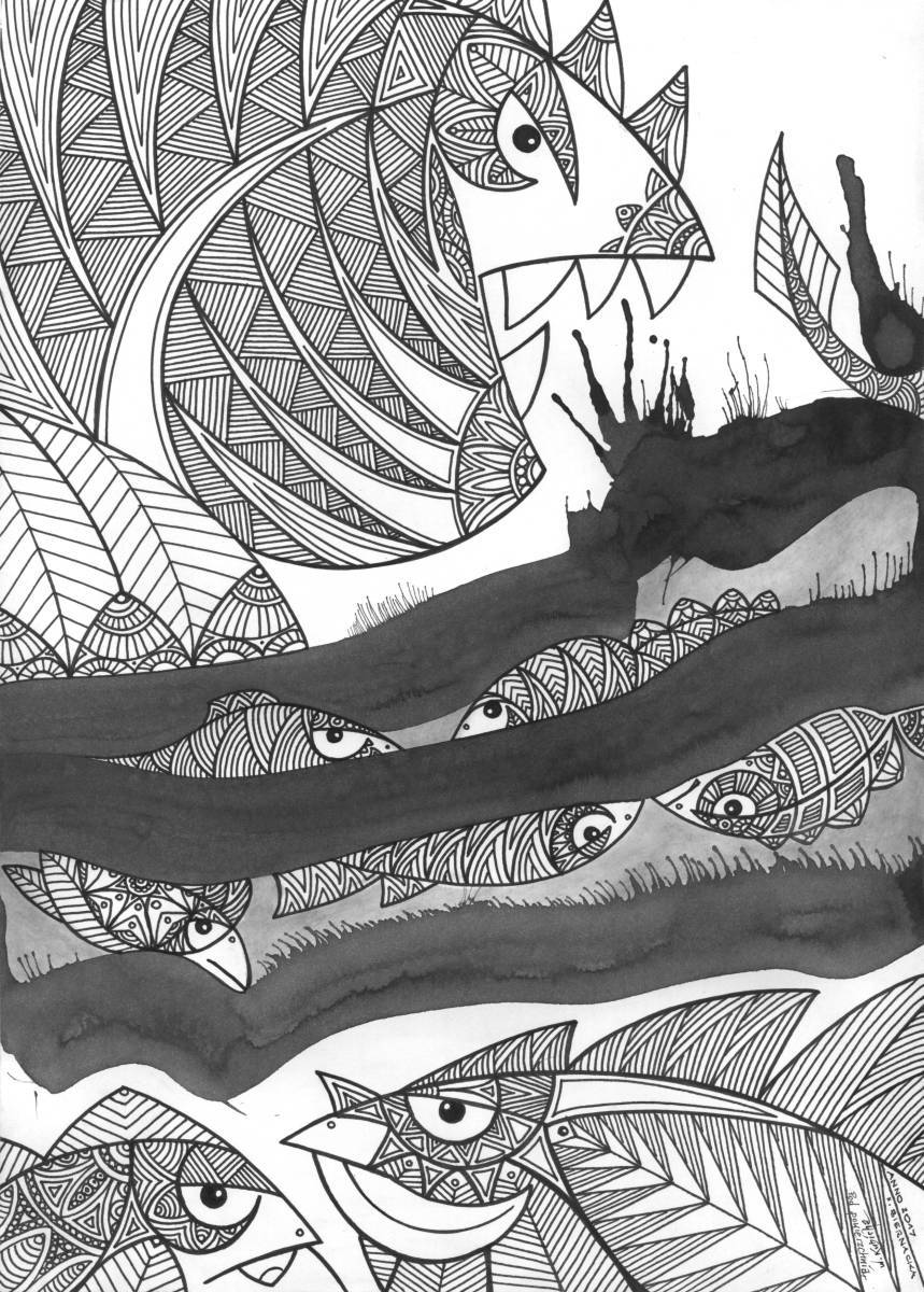 Rysunek pod tytułem - Pod powierzchnią 21 x 29,7 cm. Technika mieszana. Oryginał. Podpisany. Sprzedawany bez oprawy Ewentualne niewielkie różnice w kolorach zdjęcia i oryginału mogą wynikać z ustawień monitora. I co najważniejsze...rysunek powstał w wyniku pracy dwojga artystów - Witolda Kubichy i Iwony Biernackiej - przy realizacji wspólnego projektu zatytułowanego ?!. Każdy z rysunków tego projektu rysowany był przez nas oboje. Jedna osoba rozpoczynała pracę, a następnie przekazywała drugiej do kontynuacji. Jeśli uznaliśmy, że to słuszne - rysunkiem wymienialiśmy się kilka razy, aż do zadowalającego nas finału. Powstało w ten sposób ponad 20 rysunków, które zostały zaprezentowane na wystawie w Centrum Informacji Turystycznej w Nowym Sączu. Zabaw z tuszem, które w tym przypadku można by nazwać ilustracjami do naszej wyobraźni, nie traktowaliśmy w przesadnie poważny sposób, co do tematyki i opowiedzianej treści, nie ma też wiodącego tematu, ani pojedynczego literackiego dzieła, które było bezpośrednią inspiracją twórczych działań. Większość prac projektu ma ilustracyjno-groteskowy charakter. Poważnie staraliśmy się podejść do warstwy formalnej, aby spod używanych przez nas narzędzi rysunkowych nie wyszły rzeczy niedojrzałe. Wspólna praca i wystawa mają jeszcze jeden ważny wymiar. Współczesny system kształcenia artystycznego (Iwona Biernacka - absolwentka Liceum Plastycznego w Nowym Wiśniczu, Witold Kubicha - absolwent Wydziału Grafiki ASP w Krakowie) generuje artystów samotników, nie potrafiących na niwie artystycznej współpracować. Przesłanie naszej wspólnej pracy i wspólnej wystawy jest takie, że mimo wyraźnych różnic w poglądach, również na sprawy ważne, można (i trzeba) współpracować, gdy podjęte dzieło jest dobre, a wymiar całości działań twórczy. Ponieważ na każdej pracy widnieją dwa podpisy, więc pomyśleliśmy o uspokojeniu tych z pośród nabywców, którzy mieliby wątpliwość związaną z nabyciem u jednej osoby rysunku, przy którym pracowały dwie osoby. W moim posiadaniu, znajduje się pismo (do wglądu na miejscu) z własnoręcznym podpisem Iwony Biernackiej potwierdzające jej zgodę na sprzedaż wszystkich prac projektu "?!" przeze mnie w dowolny wygodny dla mnie sposób. Linki zewnętrzne do opisu projektu - to np.: 1. http://www.nowysacz.pl/komunikaty-biura-prasowego/17485 2. http://www.dts24.pl/o-dwojgu-takich-co-rysowali-razem-wystawa-iwony-biernackiej-i-witolda-kubicha/ 3. http://www.dts24.pl/artystyczny-tandem-iwona-biernacka-i-witold-kubicha/