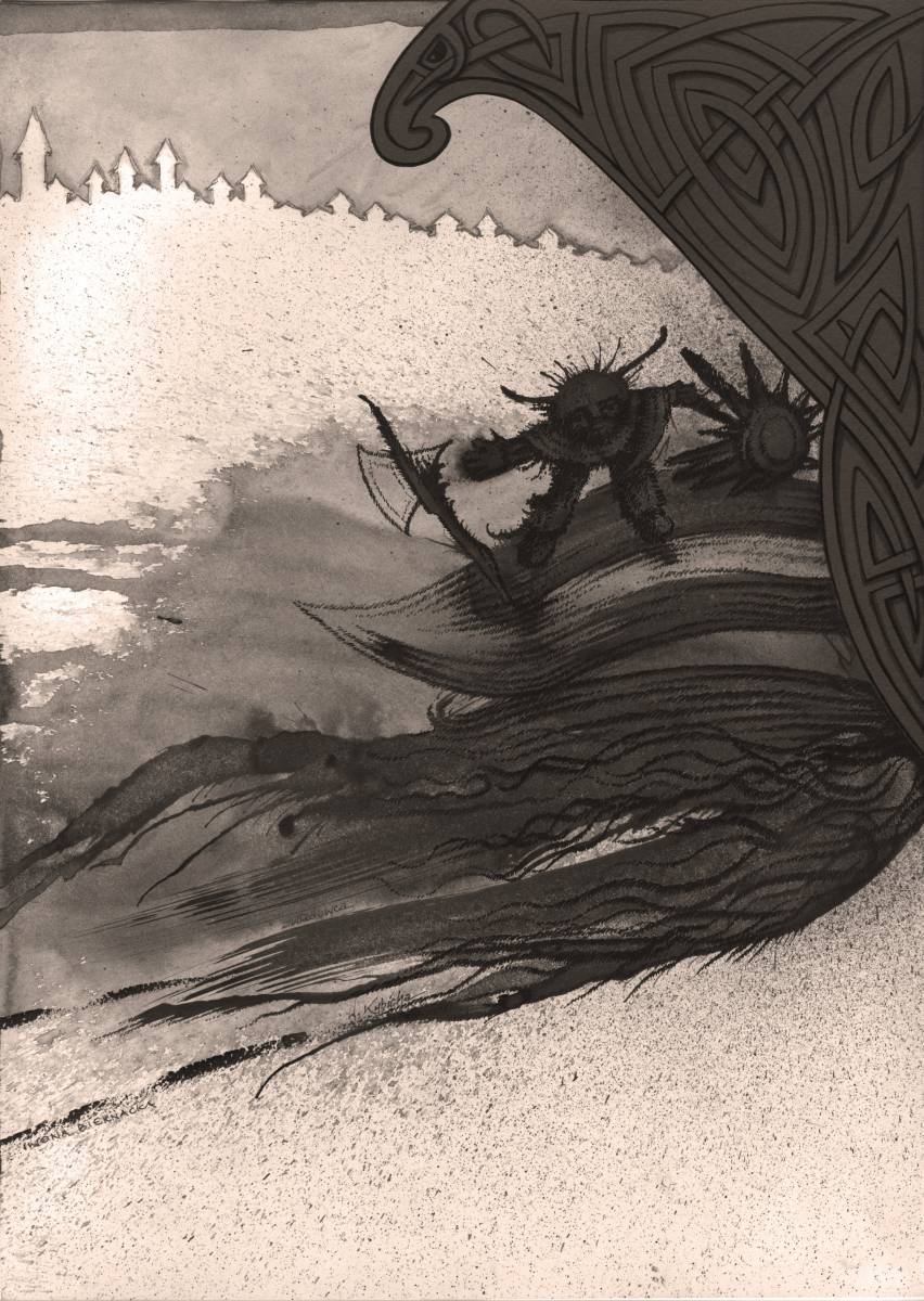 Rysunek pod tytułem - Zwiadowca 21 x 29,7 cm. Technika mieszana. Oryginał. Podpisany. Sprzedawany bez oprawy Ewentualne niewielkie różnice w kolorach zdjęcia i oryginału mogą wynikać z ustawień monitora. I co najważniejsze...rysunek powstał w wyniku pracy dwojga artystów - Witolda Kubichy i Iwony Biernackiej - przy realizacji wspólnego projektu zatytułowanego ?!. Każdy z rysunków tego projektu rysowany był przez nas oboje. Jedna osoba rozpoczynała pracę, a następnie przekazywała drugiej do kontynuacji. Jeśli uznaliśmy, że to słuszne - rysunkiem wymienialiśmy się kilka razy, aż do zadowalającego nas finału. Powstało w ten sposób ponad 20 rysunków, które zostały zaprezentowane na wystawie w Centrum Informacji Turystycznej w Nowym Sączu. Zabaw z tuszem, które w tym przypadku można by nazwać ilustracjami do naszej wyobraźni, nie traktowaliśmy w przesadnie poważny sposób, co do tematyki i opowiedzianej treści, nie ma też wiodącego tematu, ani pojedynczego literackiego dzieła, które było bezpośrednią inspiracją twórczych działań. Większość prac projektu ma ilustracyjno-groteskowy charakter. Poważnie staraliśmy się podejść do warstwy formalnej, aby spod używanych przez nas narzędzi rysunkowych nie wyszły rzeczy niedojrzałe. Wspólna praca i wystawa mają jeszcze jeden ważny wymiar. Współczesny system kształcenia artystycznego (Iwona Biernacka - absolwentka Liceum Plastycznego w Nowym Wiśniczu, Witold Kubicha - absolwent Wydziału Grafiki ASP w Krakowie) generuje artystów samotników, nie potrafiących na niwie artystycznej współpracować. Przesłanie naszej wspólnej pracy i wspólnej wystawy jest takie, że mimo wyraźnych różnic w poglądach, również na sprawy ważne, można (i trzeba) współpracować, gdy podjęte dzieło jest dobre, a wymiar całości działań twórczy. Ponieważ na każdej pracy widnieją dwa podpisy, więc pomyśleliśmy o uspokojeniu tych z pośród nabywców, którzy mieliby wątpliwość związaną z nabyciem u jednej osoby rysunku, przy którym pracowały dwie osoby. W moim posiadaniu, znajduje się pismo (do wglądu na miejscu) z własnoręcznym podpisem Iwony Biernackiej potwierdzające jej zgodę na sprzedaż wszystkich prac projektu "?!" przeze mnie w dowolny wygodny dla mnie sposób. Linki zewnętrzne do opisu projektu - to np.: 1. http://www.nowysacz.pl/komunikaty-biura-prasowego/17485 2. http://www.dts24.pl/o-dwojgu-takich-co-rysowali-razem-wystawa-iwony-biernackiej-i-witolda-kubicha/ 3. http://www.dts24.pl/artystyczny-tandem-iwona-biernacka-i-witold-kubicha/
