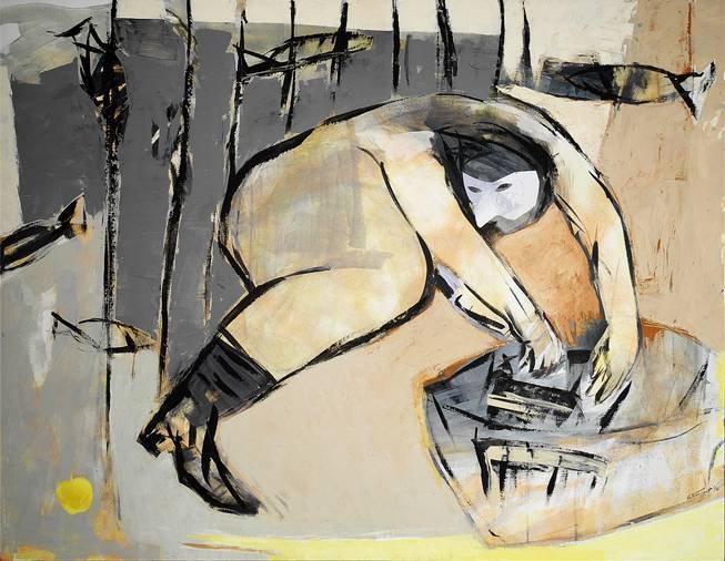 PIORĄCA, obraz sygnowany nazwiskiem autora z przodu i z tyłu, powstał w 2006r. Na obrazie widać postać pochyloną, jakby w zanurzeniu w swoim świecie. Kolory są stonowane, z dominacją szarości, brązów i delikatnych beży, które tworzą coś w rodzaju melancholijnego nastroju. Linie są dynamiczne i pewne, a kompozycja wydaje się balansować na granicy chaosu. Geniusz artysty tkwi w umiejętnym użyciu abstrakcji, która nadaje dziełu niepowtarzalny charakter. Atmosfera tej pracy jest nieco zagadkowa, przesiąknięta ciszą i lekkim napięciem. Sprawia, że chce się zgłębiać tę sztukę jeszcze bardziej. Czuję się intrygowany, a może nawet trochę zdezorientowany. "Co się tu dzieje" – wyrywa się myśl. Technika malarska jest luźna, w stylu przypominającym ekspresjonizm, co wzmacnia poczucie dynamiki. Interesująca jest także gra cieni, która dodaje głębi. Obraz emanuje tajemniczością i prowokuje do myślenia. Obraz oprawiony w czarną taśmę - gurt.