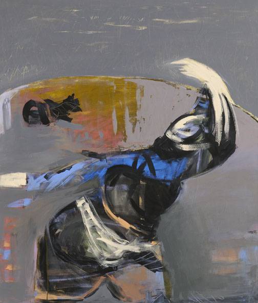 To dzieło sztuki zanurzone jest w świecie dynamiki i ekspresji. Kolory dominujące to chłodne odcienie szarości z akcentami niebieskiego i przytulnym ciepłem złocistego żółtego. Kompozycja obrazu jest niezwykle angażująca: figlarnie zdeformowana postać unosi się ku górze, jakby próbowała uchwycić ethereal moment w powietrzu. Ogólna atmosfera jest pełna ruchu i napięcia, przypominająca taniec w zawieszeniu między rzeczywistością a snem. Artystyczne techniki są zdecydowanie odważne. Widoczne ślady pędzla, niedbałe linie i gwałtowne pociągnięcia tworzą wrażenie niepokoju i energii. Obraz może budzić różnorodne emocje - jedni mogą odczuwać pewien chaos, inni zaś dostrzegać urok życia w ruchu. Może to przypominać skok do basenu w upalny dzień. Patrząc na ten obraz, czuję, jak serce mi szybciej bije. Dla siedmiolatka ten obraz to pewnie ktoś, kto tańczy na deszczu albo ślizga się po lodzie. To skomplikowana układanka emocji i interpretacji, która zostawia miejsce na osobiste przemyślenia. A może to tylko pogoń za czymś nieuchwytnym? Who knows? W każdej rysie, w każdym kolorze skrywa się część historii, która czeka na odkrycie. Czyż nie jest to fascynujące?