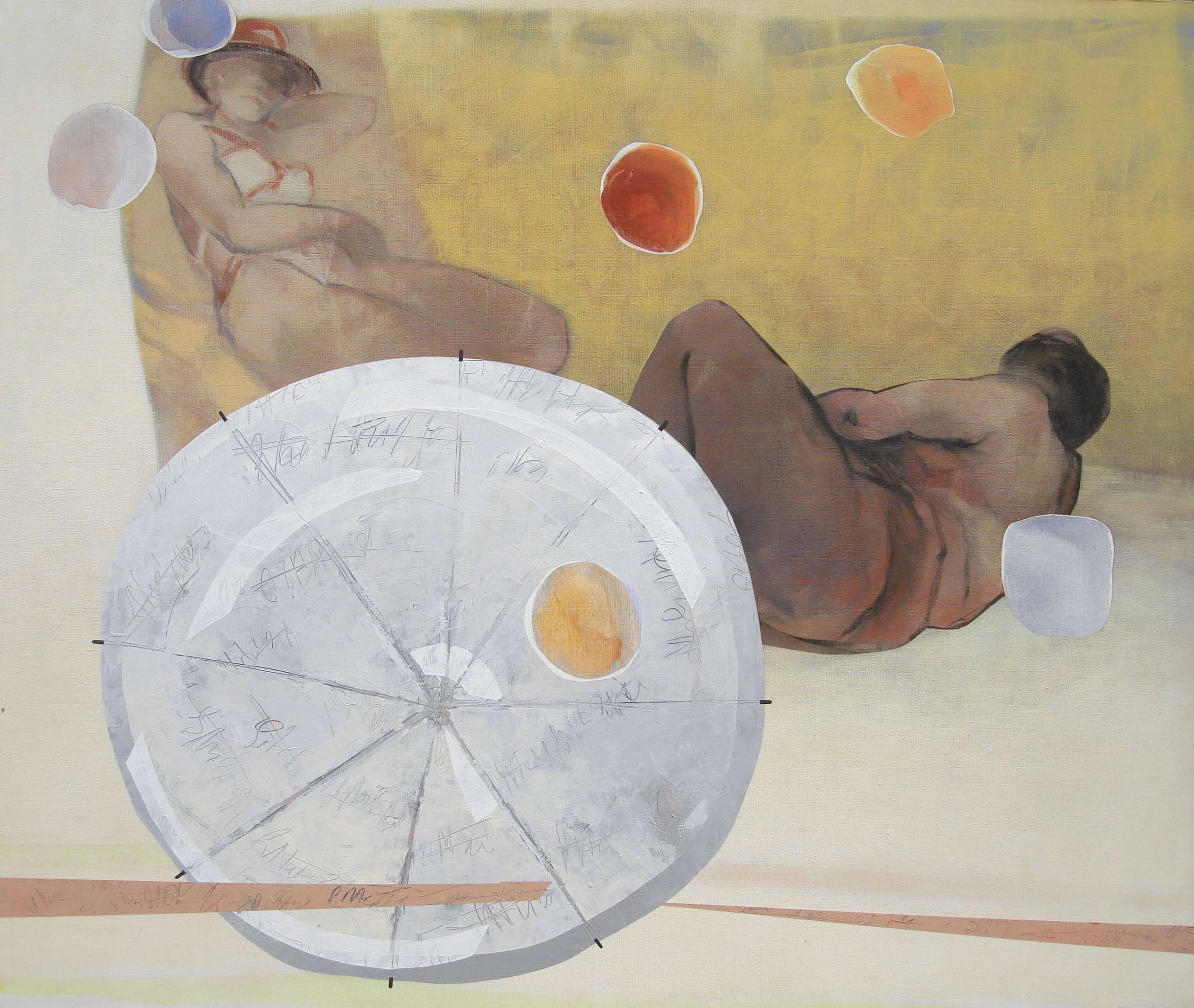 PLAŻOWICZKI, obraz sygnowany nazwiskiem autora z przodu i z tyłu, powstał w 2012 r. Wspomnienie lata, opalające się kobiety na plaży. Obraz przedstawiający częsty motyw u tego artysty - postać kobiety. Zwykło się mówić iż nawet gdy Włodek Warulik chce namalować obraz nieprzedstawiający (abstrakcyjny) to i tak z gestu pojawia się na płótnie kobieta, temat dominujący w jego malarstwie. Akryl na płótnie naciągniętym na blejtram, oprawiony w czarny gurt, sygnowany z przodu i z tyłu obrazu.